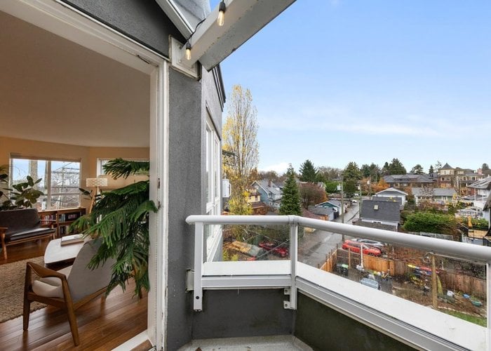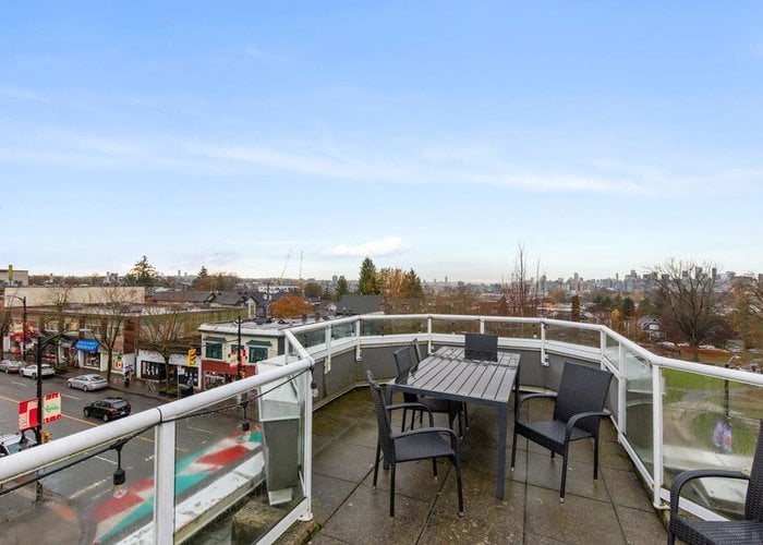 This top floor home is flooded w/ light, even on the rainiest days! A panoramic mountain view provides the backdrop to a spacious Great Room w/ space to entertain, live, play, & dine. The floor plan features 2 large bdrms, ample storage, & a one-of-a-kind family room/ flex area which makes this condo feel like a house. The quiet, NE corner location in the bldg makes this unit incredibly quiet while just steps from the amenities of Commercial Dr. Other highlights incl a roof-top patio, large skylights, H/W floors, & custom maple woodwork throughout. City Lights is a rain screened bldg which is proactively maintained w/ updates such as re-piping (‘21), EV upgrade (‘25) & more.