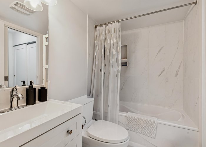 Discover this 706 sqft 1-bed & den, completely refreshed with new paint, flooring, kitchen & bathroom cabinets, countertops, appliances, faucets, lighting, vanity, backsplash & blinds-all carefully selected to elevate the space with a clean, contemporary feel. Enjoy an open floor plan with sunny SW exposure, cozy gas fireplace & ample space for a dining table. The windowed den adds versatility as a home office, guest room or creative studio, while the Jack-and-Jill ensuite provides added convenience. Includes in-suite laundry, parking, storage & pets allowed. Unbeatable West End location, just one block from English Bay & Stanley Park, steps to Denman, Davie & Robson. Beautifully finished, perfectly located, exceptionally spacious & thoughtfully upgraded. OPEN HOUSE:SUN, NOV 30 from 12-2PM