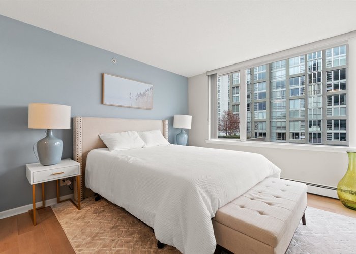 Enjoy False Creek & WATER views from this totally renovated 2-bdrms home! Surrounded by seawall and parks, the Crestmark by Concord Pacific is a true WATERFRONT building situated on the quietest and greenest stretch of coveted marinaside. Features floor to ceiling windows, laminate flooring throughout, S/S appliances, granite countertop, & master bed w/ ensuite & double vanity. Fantastic amenities include 24 hour concierge, indoor pool, steam/sauna & gym. Literally steps from the seawall, parks, Urban Fare, David Lam Park and Roundhouse community and much more! This is Yaletown''s BEST location. 1 parking stall included! Pets welcome! Mins to everywhere !