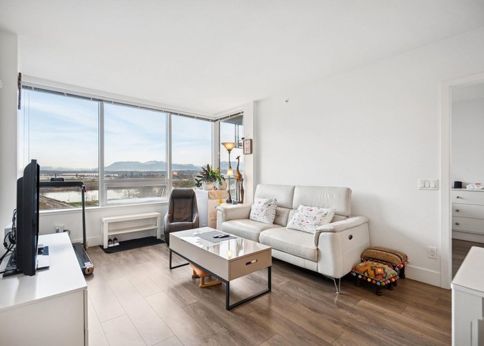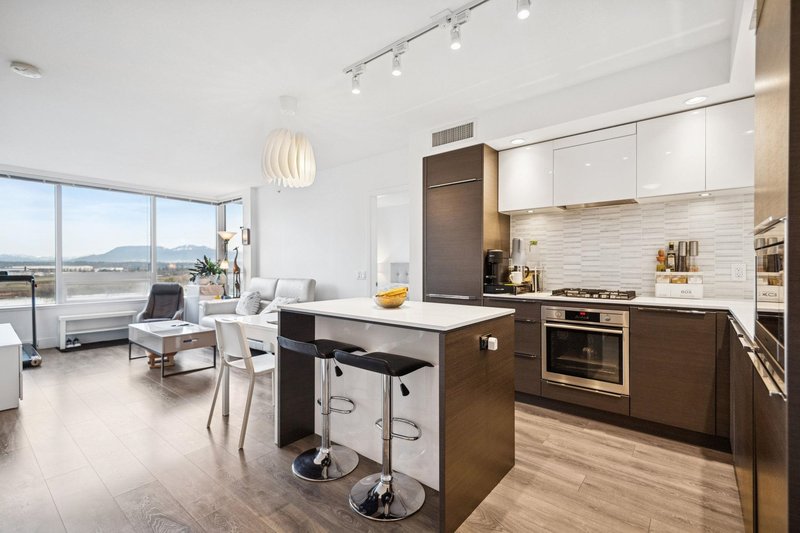Stunning high-floor 2 Bed + 2 Bath at sought-after River Park Place by Intracorp! This beautifully maintained home shows like new and offers breathtaking panoramic river and mountain views through expansive floor-to-ceiling windows. Enjoy a bright, open-concept layout with a modern chef-inspired kitchen featuring sleek cabinetry, stone countertops, integrated appliances, and a functional island perfect for entertaining. BONUS: 2 PARKING STALLS — an exceptional value and rare find for a 2-bedroom in this building. Perfect for multi-car households or added rental flexibility. Located in the heart of Richmond’s Oval Village, just steps to the riverfront, parks, restaurants, and transit. This is elevated condo living at its finest — move-in ready and impeccably cared for.