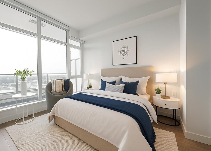 BEST PRICED ONE BEDROOM! Experience elevated living at Starling at Lumina in Brentwood! This one-bedroom, one-bath home offers an unobstructed east-facing view with an abundance of natural light throughout. Designed for modern comfort, it features 9'' ceilings, premium Bosch stainless steel appliances, sleek cabinetry, quartz countertops, and laminate flooring throughout. Equipped with A/C for year-round comfort. This concrete high-rise provides top-tier amenities including concierge service, fitness centre, and indoor/outdoor lounge. Includes one storage locker. Steps to Brentwood Mall, SkyTrain, dining, and parks — a perfect home for first-time buyers or investors! Open House Sat Feb 21 2-4PM and Sun Feb 22 12-2PM!