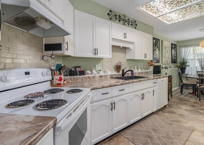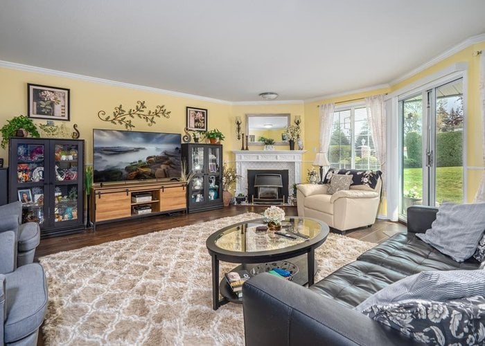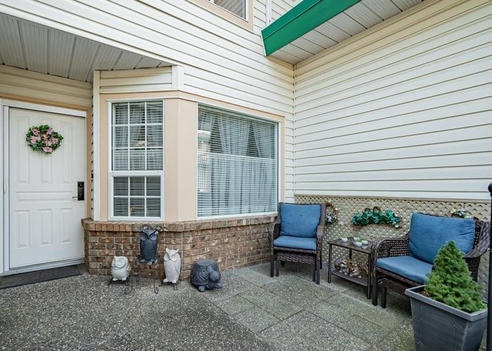 LOCATED in the highly sought-after CEDARBROOK VILLAGE, this charming ground-level, 1-storey townhome offers the perfect blend of convenience and comfort. Situated in a prime location close to shopping, dining, hospital and transit. Originally the show home, it features 2 bedrooms, 2 bathrooms, and a bright white kitchen with updated countertops, newer laminate flooring. The living room has a cozy gas fireplace, and the front and back patios offer a wonderful outdoor space, with the back patio overlooking a private common yard. Located in a well-maintained complex, it''s perfect for those seeking a stair-free, low maintenance lifestyle. 55 plus complex. Replaced hot water heater 2023, new pressure regulating valve June 2024,New roofs being done. This home is ready to move into.