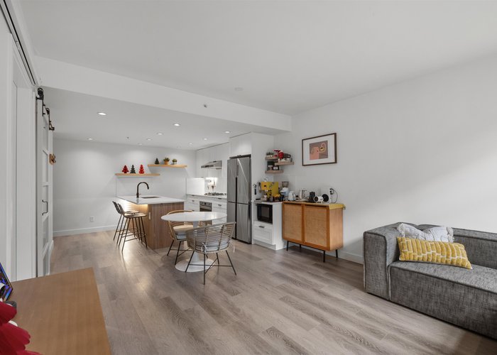 Look no further - the CONCRETE Fairview townhome that you''ve been waiting for has just hit the market! This elegant 2storey home offers 2beds/3baths, and has been tastefully updated with a new kitchen, new bathrooms, updated appliances & fresh paint. Enter in through the private entrance off of the 118sf patio and into an open concept lower level with a spacious living room, gourmet kitchen, eating area, ample storage & a conveniently located powder room. The upper level offers two generously sized bedrooms, two additional bathrooms, and a bright patio. The iconic ''700 West 8th'' building is just steps from Whole Foods, Cambie Street eats, major bus routes, Skytrain Stations, and just a short walk to Charleson Park and the beautiful False Creek seawall.