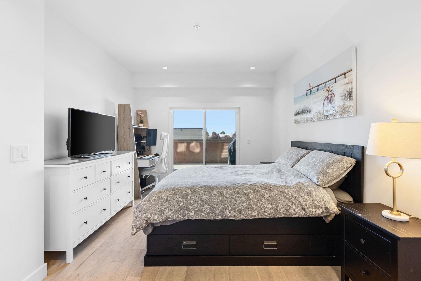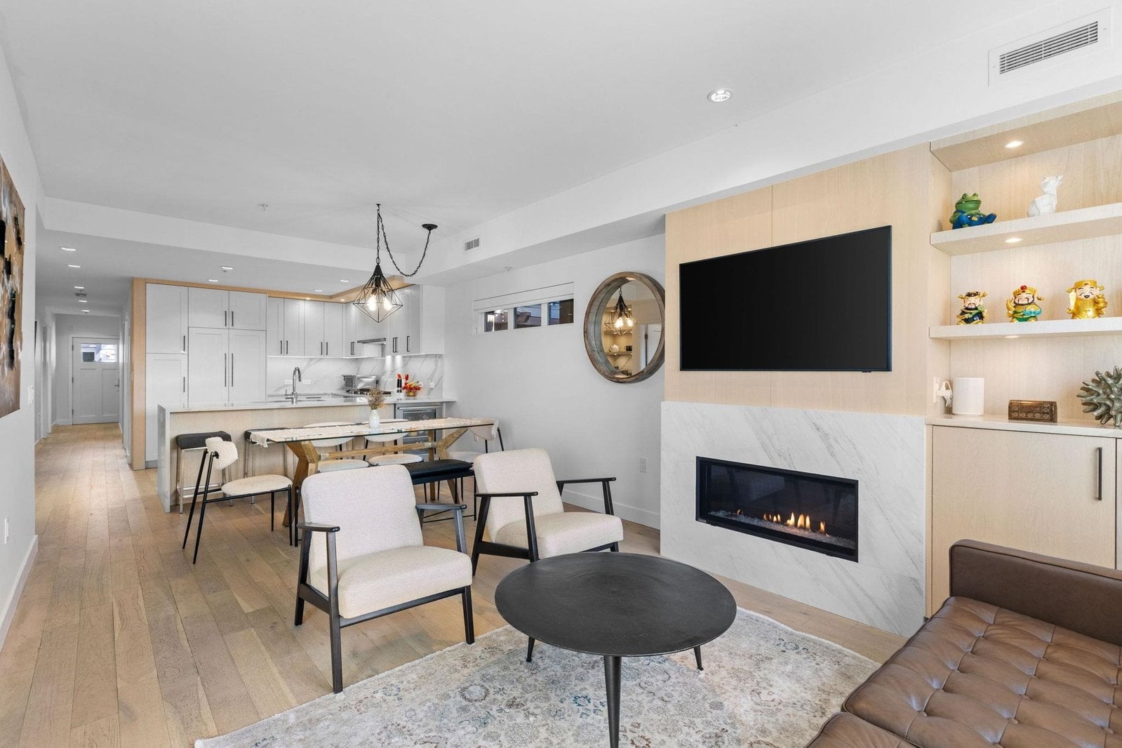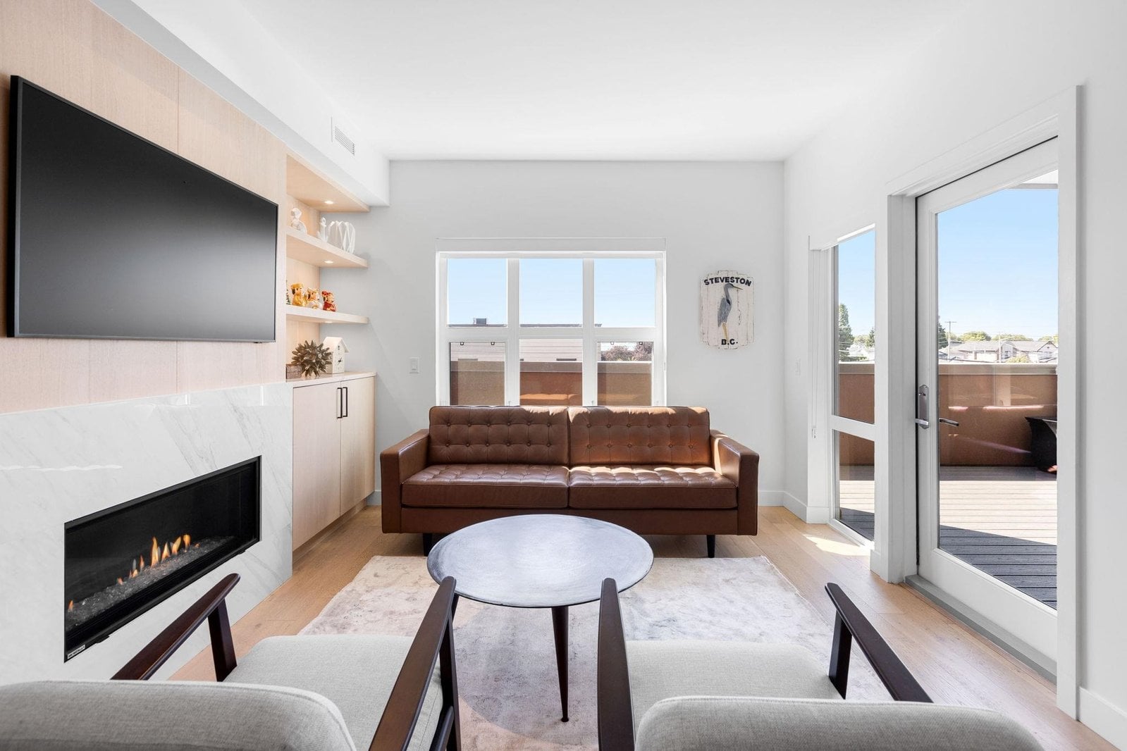 STEVESTON LUXURY CONDO LIVING – Where the timeless charm of Steveston Village meets innovative contemporary design. The ultra-exclusive BOUTIQUE Roderick offers only 32 signature residences. This coveted END CORNER HOME boasts an ultra-functional layout with TALL 9’ CEILINGS & expansive windows that flood the space with natural light. Masterfully designed by GANNON ROSS DESIGNS, the interiors strike the perfect balance between modern sophistication & timeless elegance. Premium finishes include wide plank engineered hardwood, wool-blend carpets, Hunter Douglas roller blinds, stone countertops, & custom wood-veneer cabinetry. Complete with full air conditioning and an EV-ready charger, this is elevated living in the heart of Steveston. Enjoy LARGE 171 SF FRONT PATIO & COVERED 194 sf BALCONY.