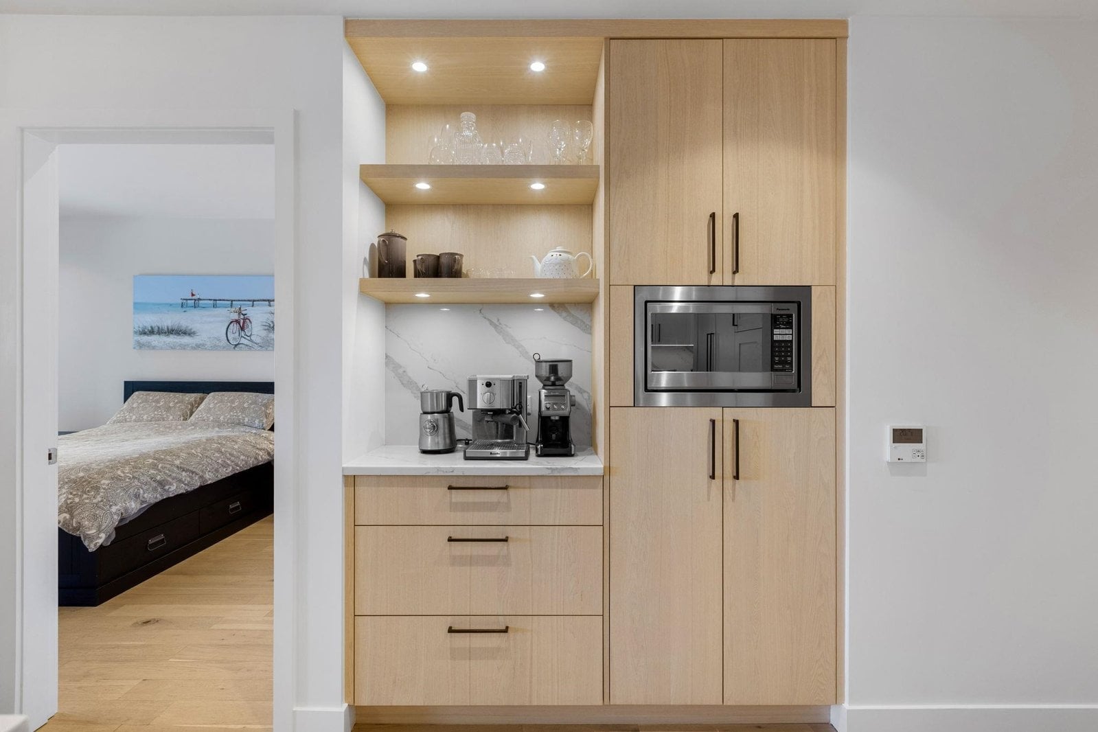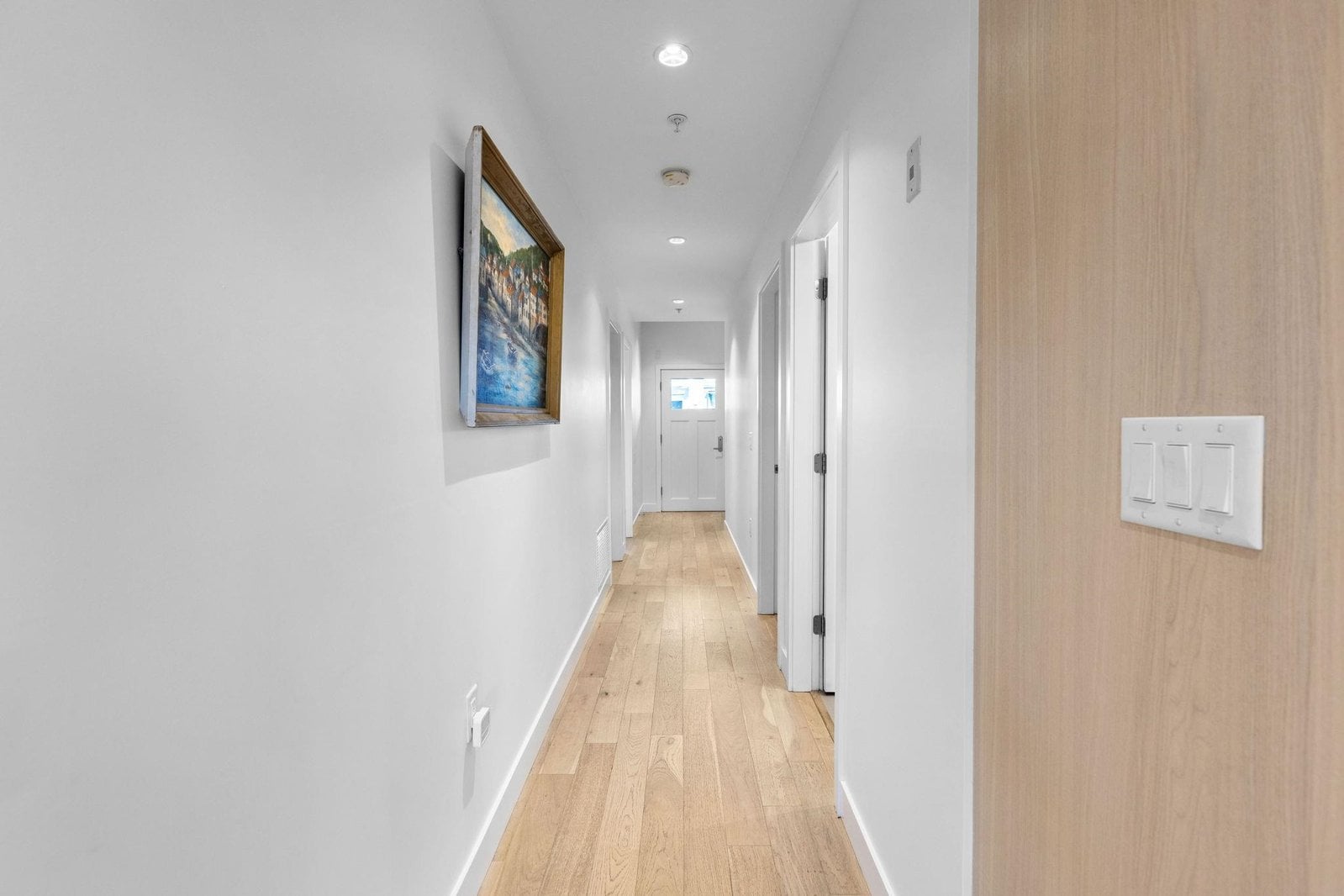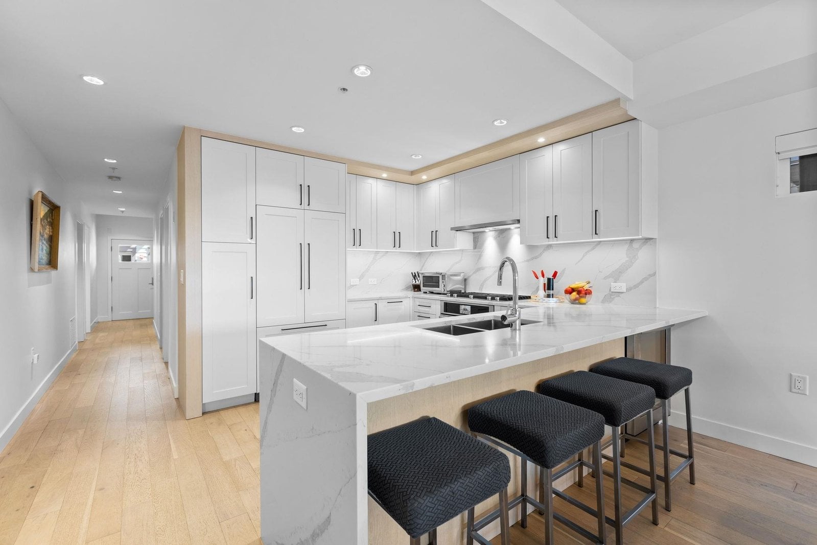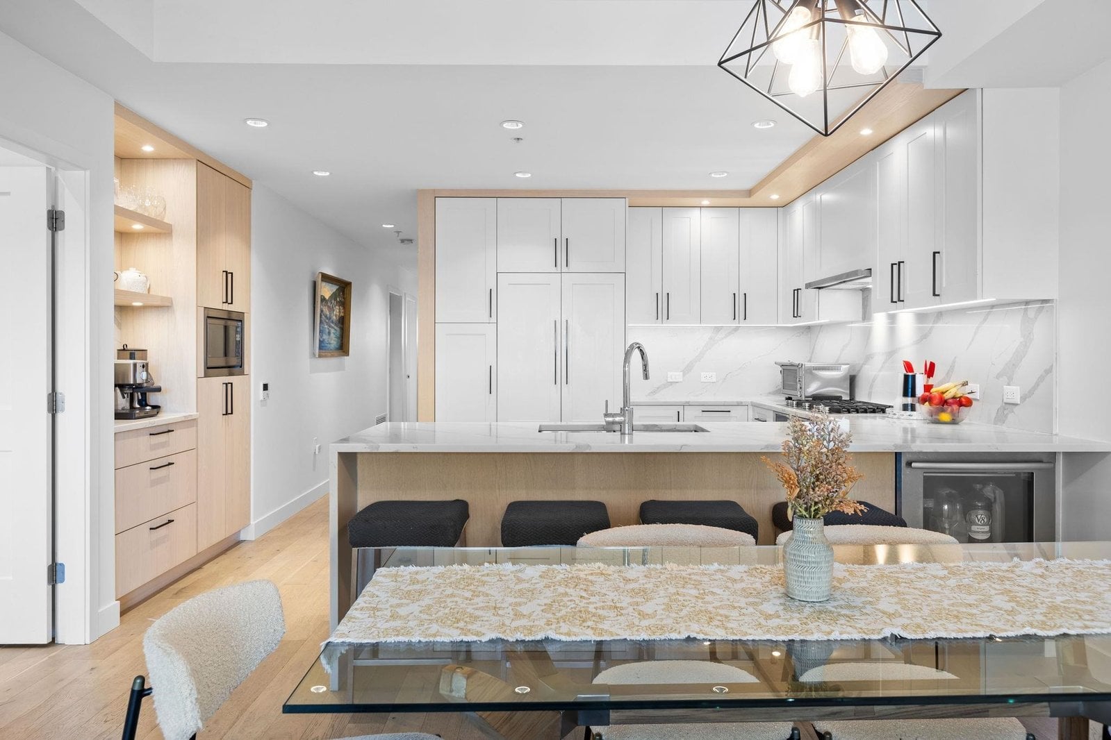 STEVESTON LUXURY CONDO LIVING – Where the timeless charm of Steveston Village meets innovative contemporary design. The ultra-exclusive BOUTIQUE Roderick offers only 32 signature residences. This coveted END CORNER HOME boasts an ultra-functional layout with TALL 9’ CEILINGS & expansive windows that flood the space with natural light. Masterfully designed by GANNON ROSS DESIGNS, the interiors strike the perfect balance between modern sophistication & timeless elegance. Premium finishes include wide plank engineered hardwood, wool-blend carpets, Hunter Douglas roller blinds, stone countertops, & custom wood-veneer cabinetry. Complete with full air conditioning and an EV-ready charger, this is elevated living in the heart of Steveston. Enjoy LARGE 171 SF FRONT PATIO & COVERED 194 sf BALCONY.