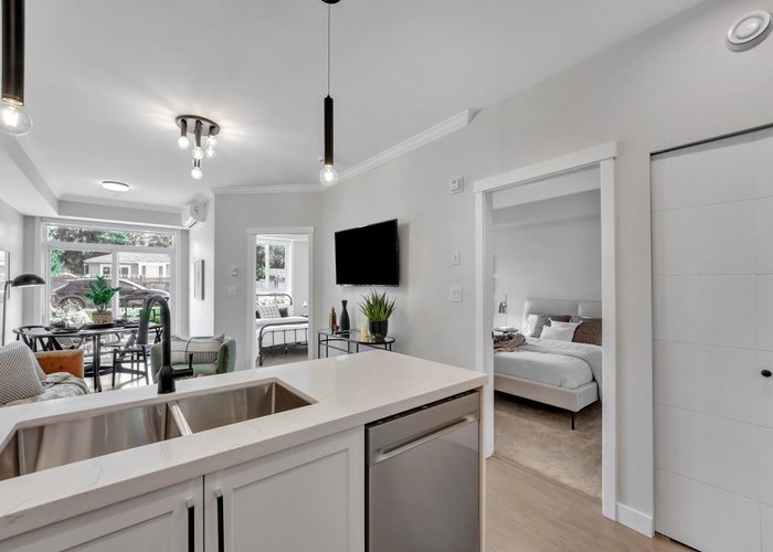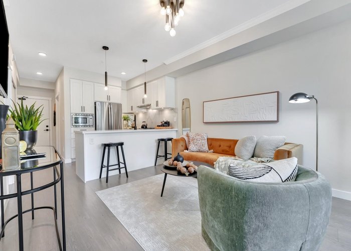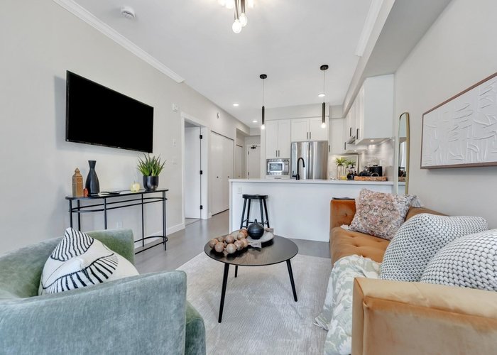 Inspire - Maple Ridge presents a thoughtfully designed 2 bedroom, 2 bath home with 754 sq ft of smart, modern living. This functional layout is enhanced by elegant white quartz countertops, stainless steel undermount sinks, an imported Italian tile backsplash, and quality stainless steel appliances. The living space features refined crown moulding, durable laminate flooring, and soft carpeting in the bedrooms for added comfort. Enjoy access to premium amenities, including a fully equipped gym with cardio and weightlifting gear, a yoga studio, a social lounge with ping pong and foosball, and rooftop patios. Discover inspired living in every detail.