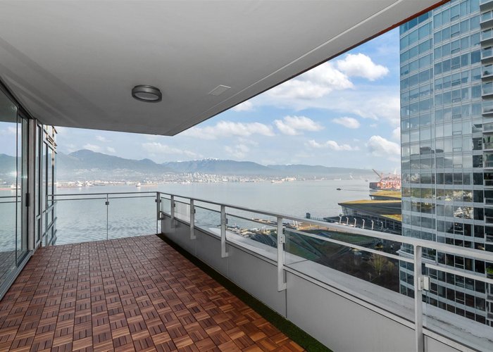 Waterfront. Prestigious Harbour Green. This massive renovated 2627sf residence offers sweeping VIEW of ocean, North Shore Mountains and Stanley Park. 24-hour concierge, pool, hot tub, sauna/steam room, and fitness center. Downstairs is the 28km vancouver Seawall, extending from Stanley Park to False Creek. Walk to world-class dining, shopping, and the marina.This spacious 2 bdrm luxurious unit boasts floor-to-ceiling windows showcasing panoramic, unobstructed views, a dream chef''s kitchen, an expansive deck, and a private three-car garage.