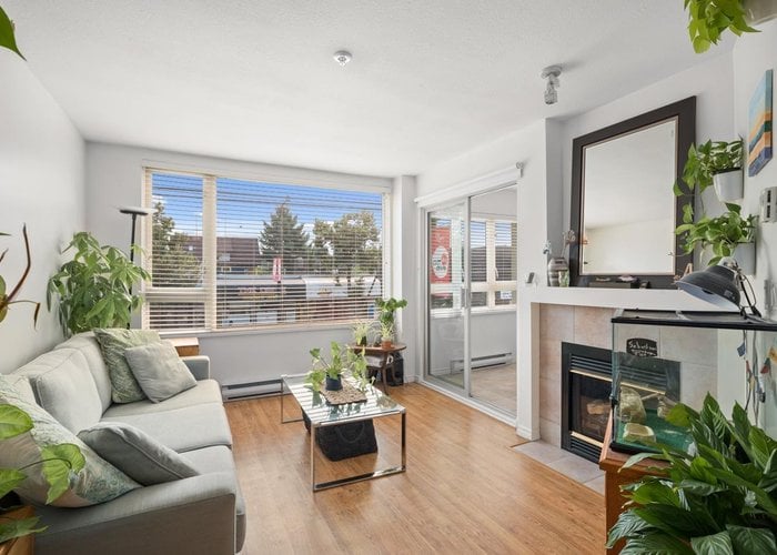 Home on the Drive! This cute 1 bed/1bath is steps from everything this amazing area has to offer- 95 walk score. Well maintained rainscreened building. Gas Fireplace, 1 parking, 1 storage. Pets ok.