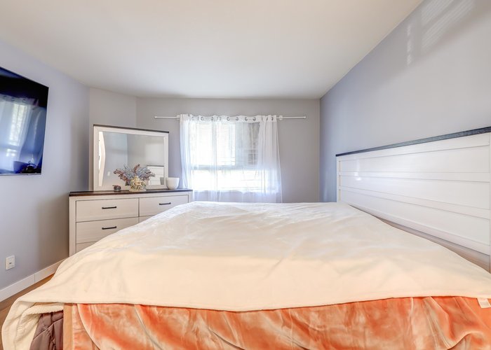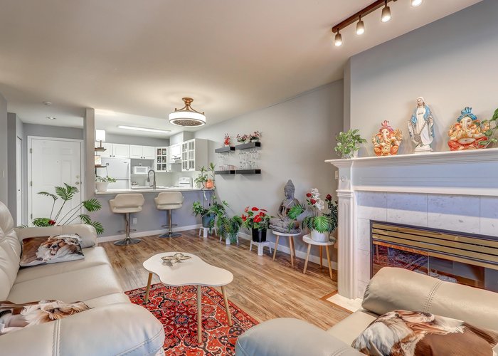 Perfect home for a first-time buyer, investor, or downsizer in Guildford, Surrey, at the well-maintained Riverpointe strata. This bright and functional unit features a spacious living and dining area with laminate flooring and a cozy gas fireplace, with gas included in the strata fee. Enjoy a private balcony ideal for relaxing or BBQs. Move-in ready with upgrades including new kitchen and bathroom countertops, new stove, new bedroom laminate flooring, vinyl tile hallway, and fresh paint. Includes combo washer/dryer, insuite storage, underground parking, locker, and bike room. Amenities include clubhouse, gym, sauna, and swirl pool. Close to Guildford Mall and all other amenities, transit, parks, and Hwy 1. Pets and rentals allowed.