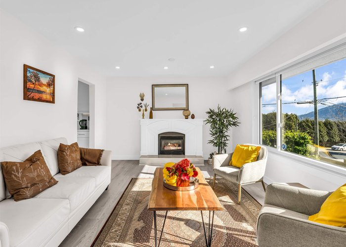 Breathtaking Water & Mountain Views! Extensively renovated down to the studs, this stunning home was thoughtfully redesigned to showcase its picture-perfect views from nearly every angle. Nestled in the highly sought-after Dollarton community, this 3,105 sq ft residence offers 5 bedrooms and 3 bathrooms, including a bright 2-bedroom suite with private entrance - perfect for extended family or valuable mortgage support. Featuring an open-concept layout, a spacious primary retreat, and an upper-level flex space ideal for a home office or an expansive dressing room with scenic outlooks, every detail has been carefully curated. The fully reimagined kitchen boasts stainless steel appliances, sleek finishes, and flows seamlessly into the main living areas. Book your private viewing today !!