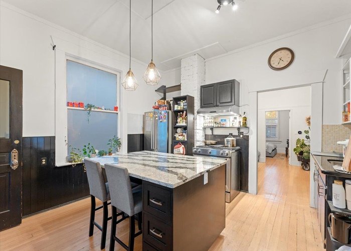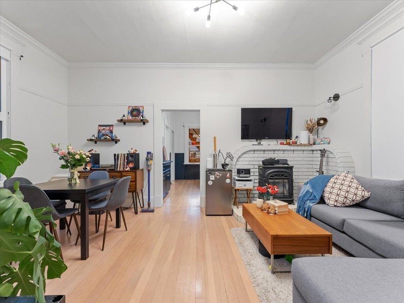 Charming starter home with timeless character and modern comfort! This well-maintained 1 bed + loft home features overheight ceilings on the main, vintage details, and thoughtful updates throughout. Enjoy refinished fir floors, newer windows, and a modern kitchen with quartz counters, gas stove, and stainless appliances. The main-floor bedroom offers easy, stair-free living, while the loft provides a flexible space for a home office or guest room. The unfinished basement is perfect for a workshop, storage, or future ideas. Relax or garden in the sunny south-facing backyard with lane access and a large entertaining deck. Conveniently located near Kingsway, Highgate Village, parks, schools, and more—this move-in-ready gem is a rare find in New Westminster!