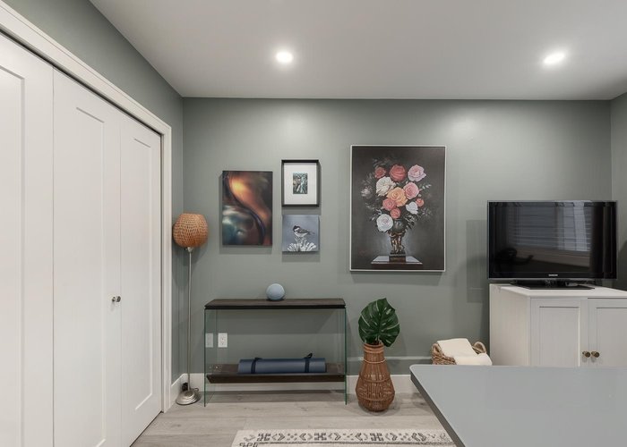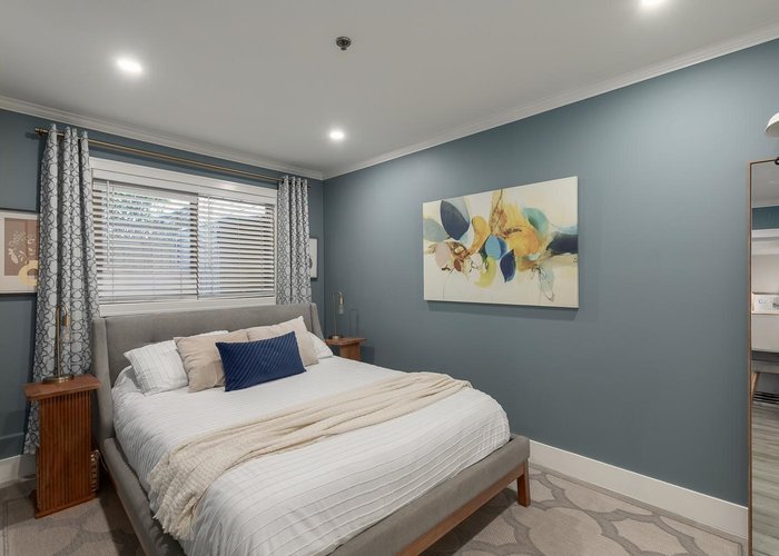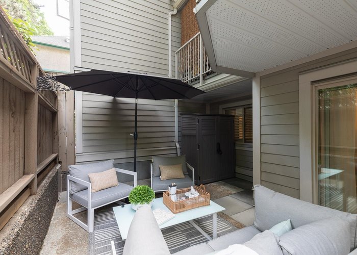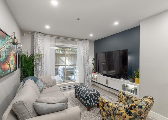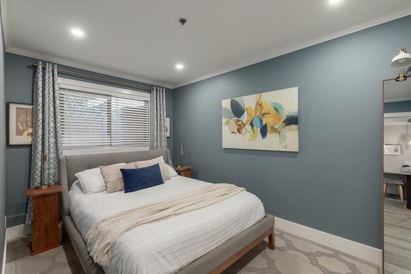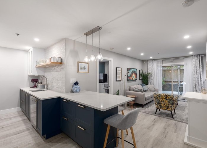 Welcome to this fully renovated 2 bedroom home in the heart of Commercial Drive. This move-in-ready residence features an efficient open-concept layout with excellent bedroom separation. Thoughtfully updated with quality finishes throughout, including quartz countertops, stainless appliances, and in-suite laundry. Enjoy an expansive 310 square foot covered patio; ideal for pets, indoor-outdoor living, and offering ample secure storage. The spacious primary bedroom accommodates a king-sized bed, and the closets have built in organizers. Situated in Woodland Villa, a well-managed and rainscreened building with upgraded windows and hardie board exterior completed in 2010. Located steps to the vibrant shops, cafes, and amenities of Commercial Drive.