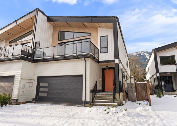 Introducing this modern ½ duplex in sunny Brackendale. The main home features 6 spacious bedrooms and 4 bathrooms, a bright open-concept living area with vaulted ceilings, chef’s kitchen, oversized balconies, and floor-to-ceiling windows. Detached accessory building welcomes endless potential. Fully fenced backyard, and ample parking. Just steps to shops, restaurants, and schools - this home truly has it all!