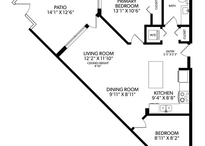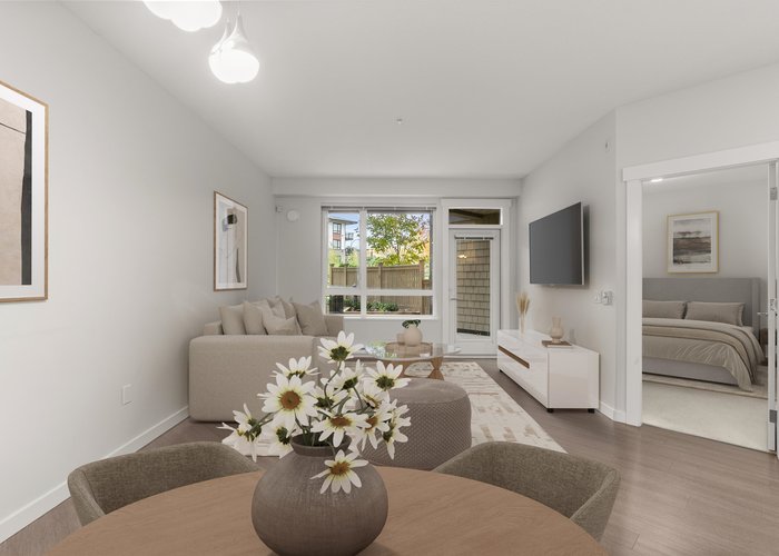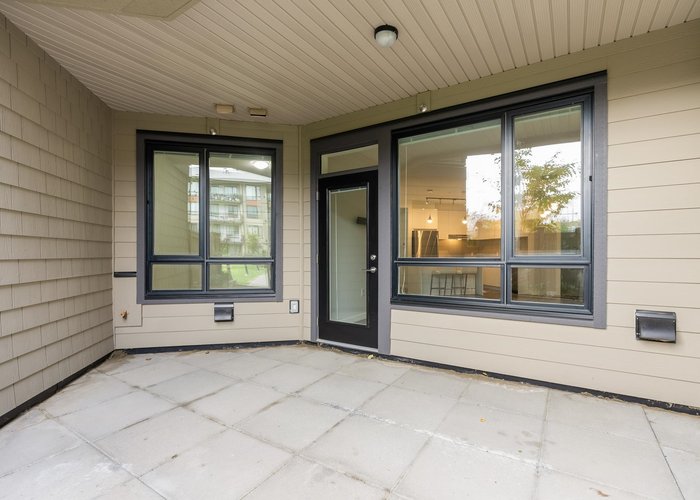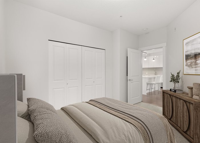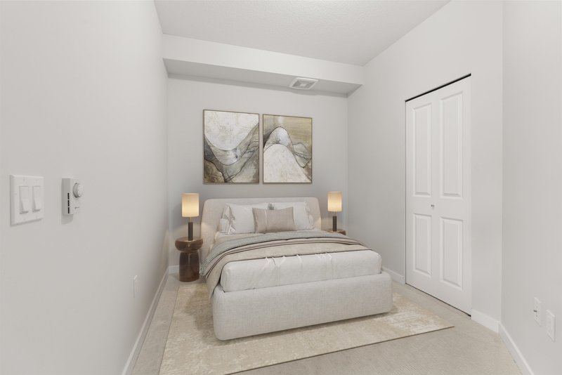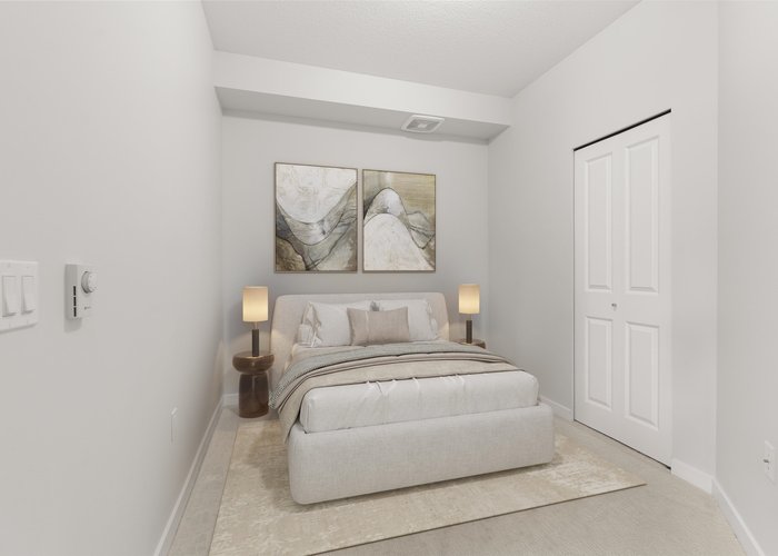 PRIVATE SECONDARY ENTRANCE WITH DIRECT ACCESS TO LARGE GREENSPACE. This 771 sq ft, 2 bedroom ground-floor unit at Elmstone offers a rare feature: a secondary private entrance (perfect for pet owners) and a patio with views of the central green space. The home includes split bedrooms for added privacy, high ceilings, and a spacious kitchen island that flows into the main living area—perfect for entertaining or relaxing in style. Don’t miss this unique opportunity in a prime location!