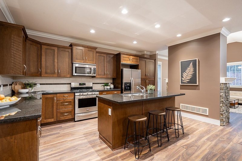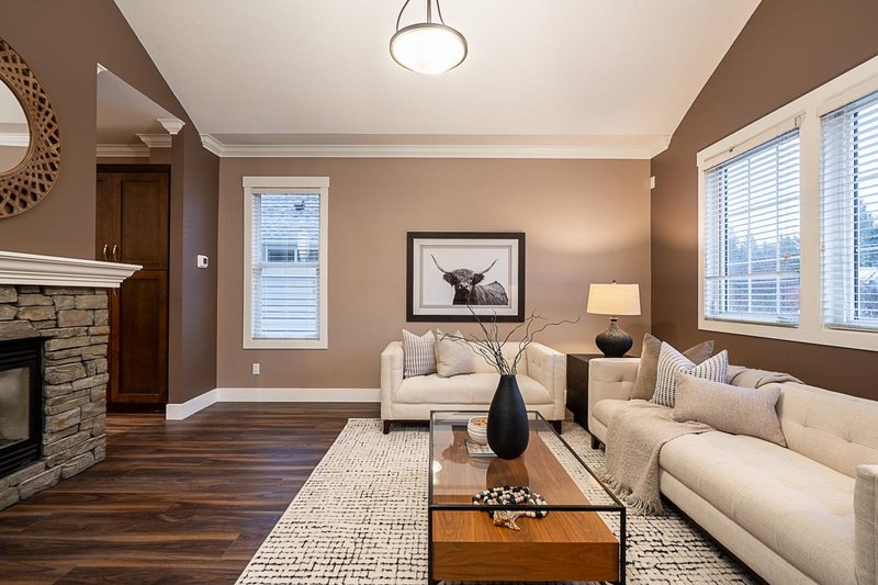 Beautifully Situated at the Base of Eagle Mountain. Enjoy all the conveniences of East Abbotsford—just minutes from shopping, recreation, and quick freeway access. This stunning great-room floor plan features vaulted ceilings and a stylish design highlighted by a double-sided fireplace. Relax on the expansive covered patio while listening to the soothing sounds of the large waterfall at the Falls. The primary bedroom includes an attached owners’ study, perfect for working from home or creating a private retreat. Recent updates include new vinyl flooring through-out and fresh paint. The basement, with its separate entrance, can easily be converted into a studio or one-bedroom suite.