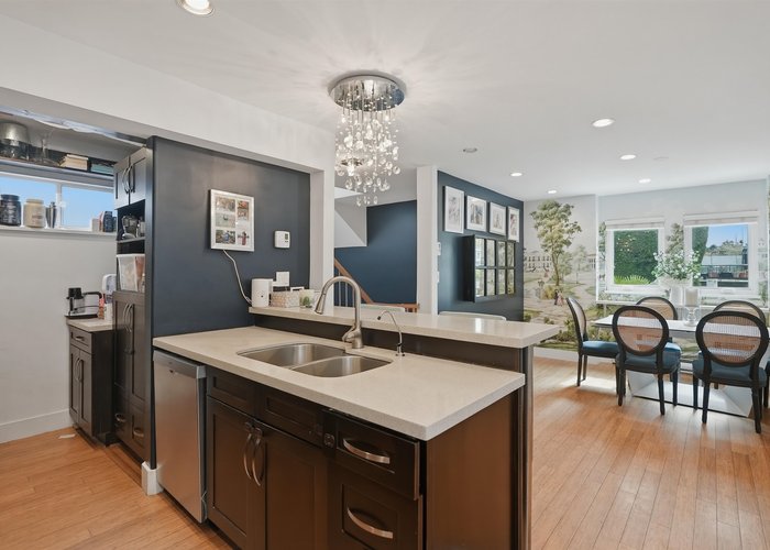 Located in spectacular Kitsilano Point, this modern front facing duplex is just half a block to the ocean, tennis courts, fine dining, Kitsilano nightlife, trendy coffee shops and playground. Enjoy summer BBQs in a beautiful but private south facing garden. Main floor features a chef''s kitchen, gas stove, wine fridge and high end appliances. Downstairs contains a bedroom, full bath, laundry, fireplace and cozy family room opening to the garden. The spacious master bedroom upstairs is complete with balcony, spa like ensuite and a generous walk in closet. Bonuses include a built-in office nook, lots of storage and a one car garage. 10 minute walk up to the vibrant West 4th and a 10 minute drive to Downtown! This location can''t be beat. OPEN HOUSE SATURDAY (APRIL 18) 2.30-4.30 PM.