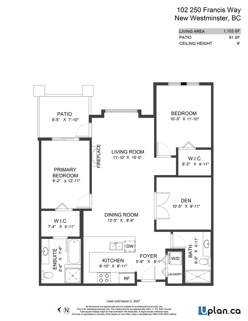 Welcome to this well designed 2 bedroom + den, 2 bath home offering the perfect blend of style, space and functionality. The spacious den is large enough to serve as a third bedroom, home office, or guest room - ideal for growing families or those working from home. The thoughtfully designed layout provides excellent separation between bedrooms creating privacy and comfort. The stylish kitchen features modern finishes, sleek cabinetry and ample counter space - perfect for both everyday living and entertaining. Quality flooring runs throughout the home. Step outside to your covered outdoor area, ideal for year-round enjoyment, morning coffee or evening relaxation. This home also includes one parking stall and one storage locker for added convenience. Open HousesTBA