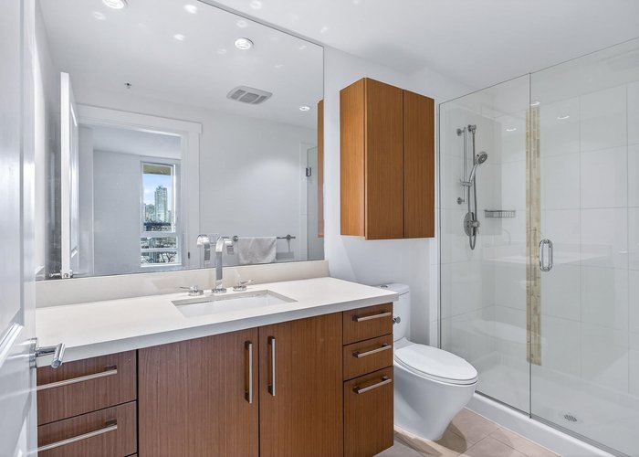 Waterfront living at The Foundry by Polygon, a concrete LEED Silver-certified building designed for the best of energy conservation, in the heart of False Creek. The bright 2-bed, 2-bath home offers a great open-concept layout with excellent bedroom separation for privacy. Enjoy floor-to-ceiling windows, high ceilings, and awesome views of the city, mountains and False Creek. The gourmet kitchen features quartz countertops, oak cabinetry, a large island, Bosch appliances. Private deck, walk-in closet, in-suite laundry, 2 parking & storage. Unbeatable location, steps to the Seawall, SkyTrain, schools, community centre, parks, Cambie shops and urban amenities. Amenities include gym, EV charging, bike storage, visitor parking, courtyard with playground, community garden.Virtually Staged!