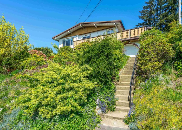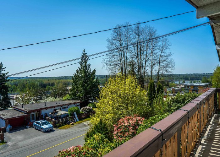 Perched high on a prestigious street of upscale homes, this one-owner gem offers spectacular views of Mount Baker, the valley, and the Fraser River. Bright and south-facing, the home sits on a sprawling 9,300 sq.ft. lot surrounded by lush, park-like gardens. Well maintained with solid bones, it features a newer roof, brand new furnace, heat pump, built-in vacuum system, oak hardwood flooring, and two charming brick fireplaces. The expansive 12’x37’ deck—partially covered—offers stunning outlooks and space to relax or entertain. The existing basement entry layout provides excellent suite potential. Enjoy the home as-is, renovate and add value, or take advantage of the large lot and tear down to build your dream residence.