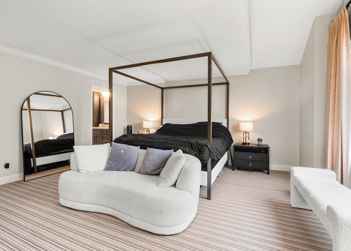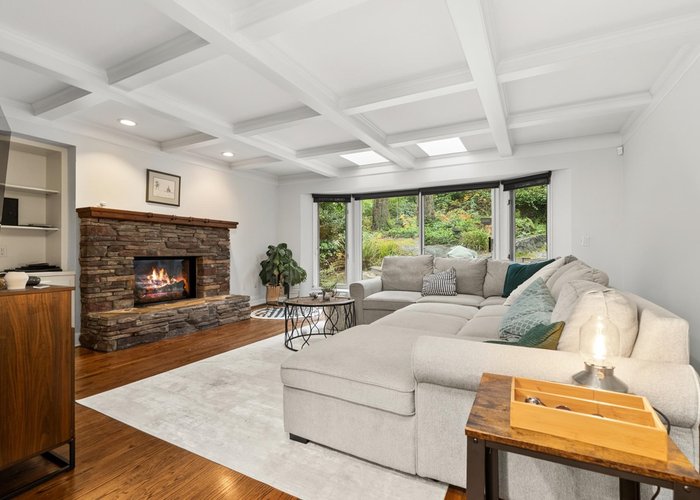 Exceptional family home, tastefully renovated in 2006, offering approx. 3,500 sqft across three levels. The traditional layout includes 4 well-appointed bedrooms upstairs, highlighted by a luxurious primary suite with a walk-in closet and elegant ensuite. Main level features a welcoming foyer, formal living and dining rooms with large windows, rich hardwood and slate flooring, a gourmet island kitchen with breakfast bar, adjoining eating area, family room with coffered ceilings, fireplace and media centre, plus a private office, rec room, and oversized double garage. French doors lead to a beautifully landscaped 1/3 acre with serene patios and lush gardens. Walk to West Bay School, McKechnie Park, and Dundarave.