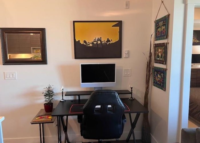 4 yrs old one bedroom condo in convenient location with shopping, fitness center, eateries right at your footsteps. Open floor plan equipped with a modern kitchen, ample cabinets. Exceptional big balcony to have your morning coffee and sunset dinner. Top floor and on the quiet side of the building. Easy access to Hwy 1. Rented to good tenant and love to stay. 24 hours notice for showing, prefer afternoon between 2 -5pm. Book your appt. now!