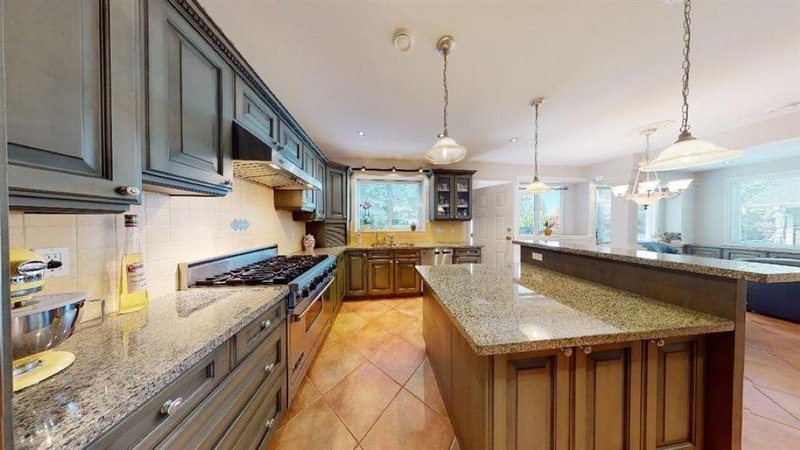 Rare find gorgeous must-see 3 full lvl home in an amazing area of N.Vancouver.Easy to stroll to Parks,trails,Delbrook Recreation Centres, shopping& schools. This lovely home fits 2 families. A nice wide entrance easy for wheelchair access.7 bedrooms with large deep closets. Quality finishings, 2 beautiful gas fireplaces, 2 full kitchens, stainless steel appliances in the main kitchen with a pro gas range.8" high ceiling basement has an in-law suite with a full kitchen & separate entrance. Extensive use of stone for flooring & staircases throughout all 3 lvls, Quality hardwood flooring for Living room, Dining & all bedrooms on top flr. A covered sundeck & a large garden good for growing vegetables, plus a large space for entertainment.2-car garage with side stone paving passage. Call today.