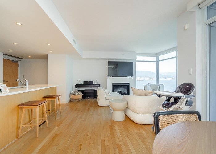 Perched on the 19th floor of iconic Cielo, this semi-waterfront 2 bed, 2 bath residence captures sweeping water, Coal Harbour, mountain and city views through dramatic floor-to-ceiling windows. The bright, open-concept plan features a gourmet kitchen with premium appliances, generous living/dining and A/C for year-round comfort. Bedrooms are thoughtfully separated, with a peaceful primary suite, walk-in closet and spa-inspired ensuite. Enjoy concierge, secure parking and Cielo’s famed Sky Spa rooftop amenities. Steps to the seawall, marinas, Urban Fare and dining. OPEN HOUSE SUNDAY NOVEMBER 30th 1 to 3pm