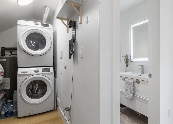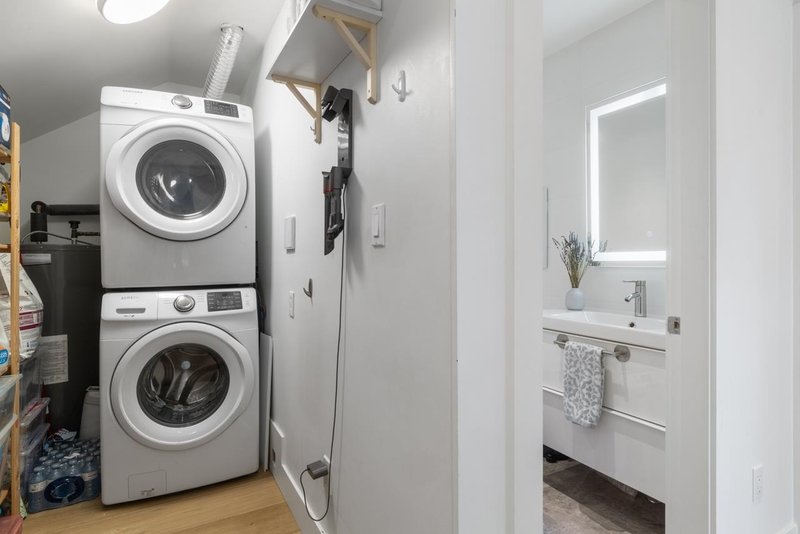 Nestled on a quiet street between Oak & Cambie, this fully renovated 2-bed, 2-bath corner townhome offers over 1200sqft of bright, comfortable living. The open-concept main level features a contemporary kitchen with stainless steel appliances & granite countertops, flowing seamlessly into a spacious living area accented by a beautifully tiled fireplace. Upstairs, you’ll find two generous bedrooms and two full baths, including a primary ensuite with built-in steam shower plus a large laundry/extra storage room. Enjoy the convenience of direct street access or enter through the parkade via elevator. Located steps from VGH and short walk to Douglas Park, this home offers the perfect balance of urban convenience & peaceful city living. Comes with 2 parking spots & an over height storage unit.