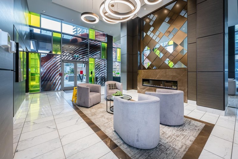 Location! Location! Location! Vittorio by Polygon just steps away from Burnaby''s Metrotown Center. This functional Air-conditioned 2BR/2Bath unit boasts unobstructed north shore mountain views from floor-to-ceiling windows. Functional layout separates the 2 BRs. NO one square foot of wasted floor area. GOURMET KITCHEN w/ plenty of cabinet & counter space, top-of-the-line FULL SIZE APPLIANCES incl. GAS stove, built-in microwave, S/S fridge & dishwasher. Enjoy some afternoon tea on the huge balcony while overlooking the breathtaking mountain view. Heating/AC/HOT WATER & GAS INCLUDED in very reasonable strata fee. Amenities including Gym, basketball court, study room, guest suites, kids playground & entertainment lounge.Short WALK to Metrotown, Bonsor Park/Rec Complex, skytrain & more!