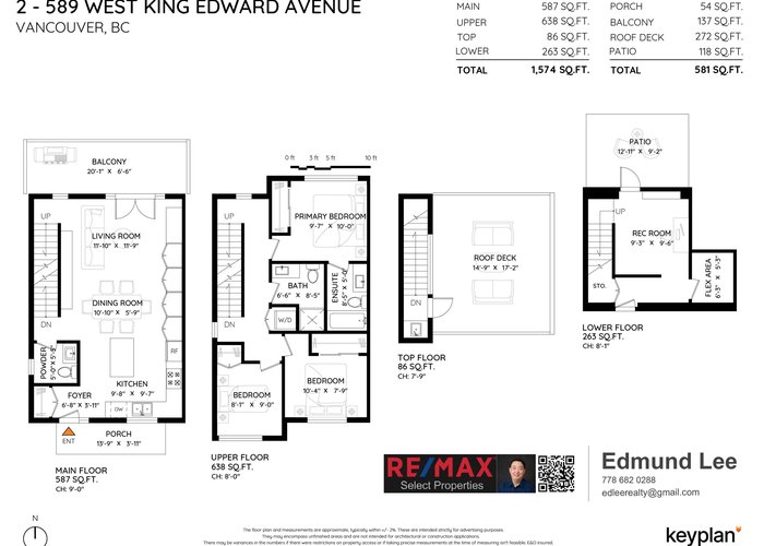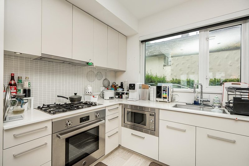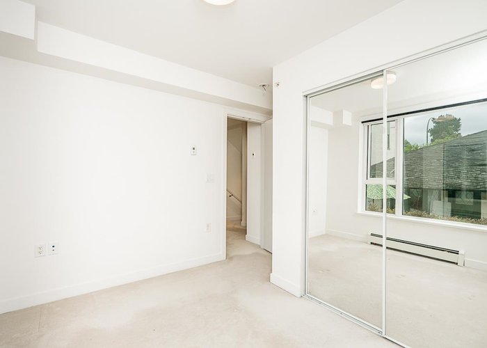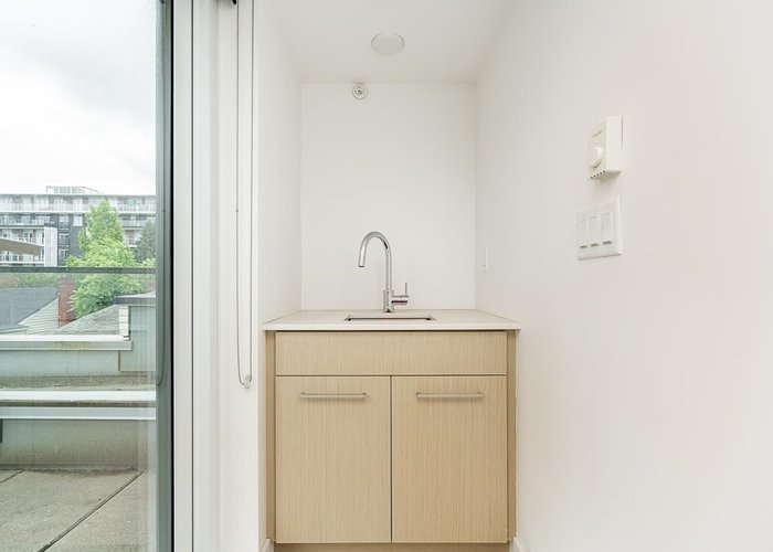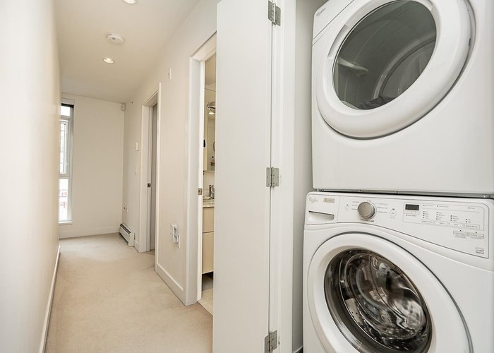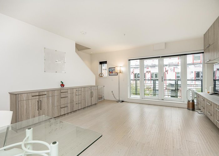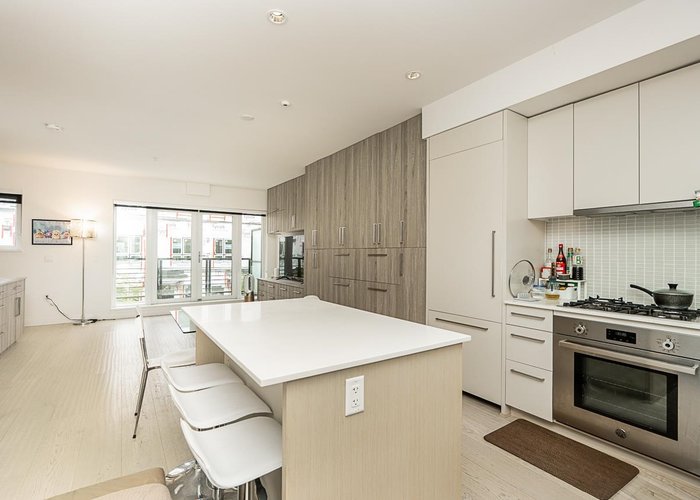 PRICE REDUCED: This gorgeous, 3 bedroom rare to find townhome is located in a central location, yet tucked away from the street and is a very quiet home with 3 large balcony/patios. Main floor with 9ft ceiling, has a north facing living room with balcony and a large open kitchen facing the patio. Upgrades ($35,000) with hardwood flooring/stairs, and 5 in wall cabinets in 2023. The spacious roof top deck, reinforced for a hot tub, with gas hookup, and with city skyline and mountains view. Pets/rentals OK. Parking for 2 cars (with 1 EV Charger) in secure underground garage, direct access to the unit. Less than 1 min walk to Canada Line King Ed Stn, and 10 mins walk Douglas & QE Park.
