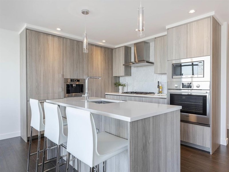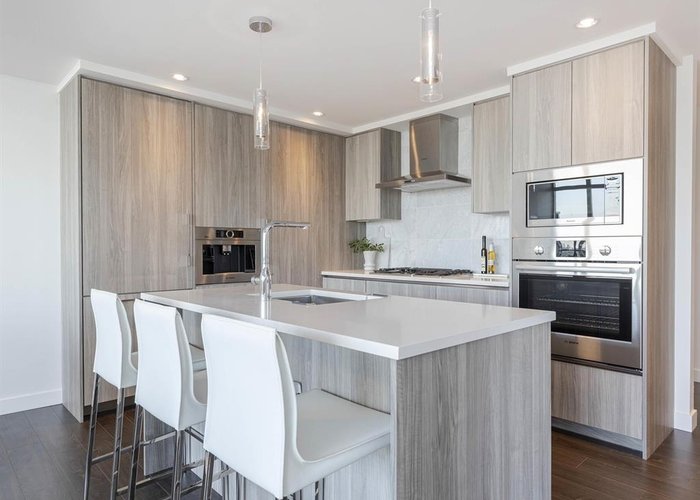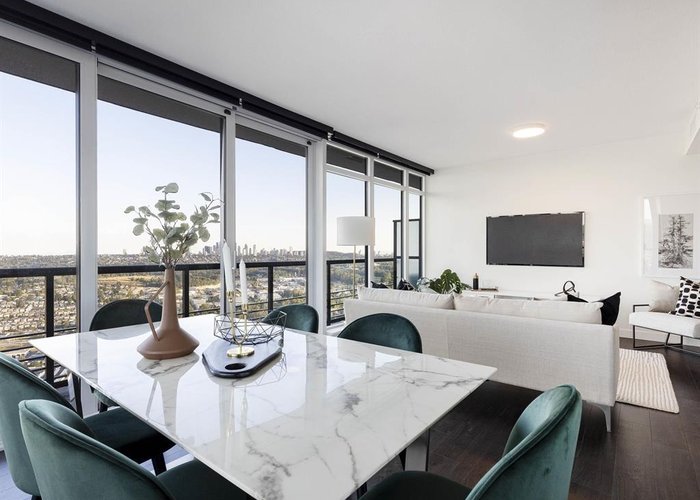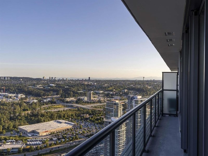 GORGEOUS 3-bedroom 3-bathroom luxury masterpiece located on the 47th floor! This captivating sky home showcases jaw dropping city, mountain & water views. Kitchen boasts Bosch appliances, built-in oven & microwave, 4 burner gas cooktop, Miele espresso machine, quartz island & plenty of cupboard space. Open living & dining area provide sprawling floor to ceiling windows with automated blinds. Primary bedroom features a spa-like bath & smartly equipped walk-in-closet. Love the covered 357 SF wrap around balcony, central heat/AC, separate laundry & linen room. Amenities include concierge, music room, pet grooming room, theatre, fitness centre & car wash. 2 side by side EV parking & large locker. Steps to the Skytrain, Whole Foods & Brentwood Mall. Open house Aug 10 (Sunday) from 2:30 pm to 4