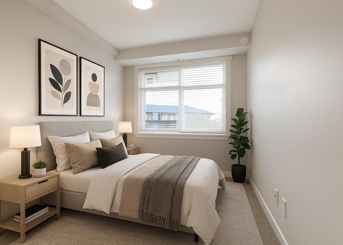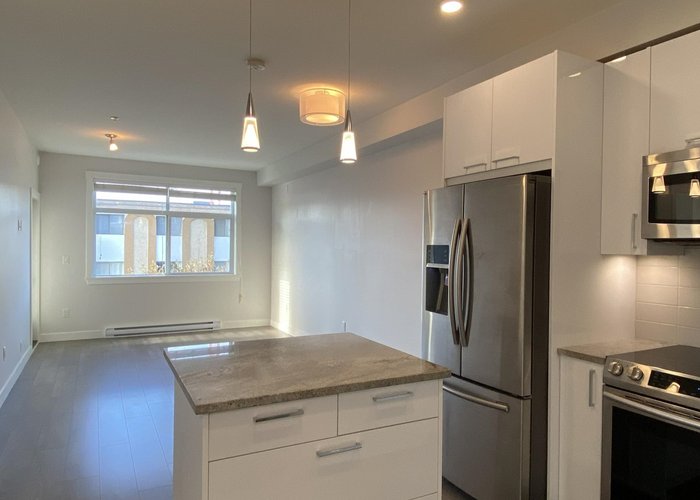 Discover comfort and convenience in this beautiful 2 Bed PLUS Den, 2 Bath quiet corner suite at “The Georgia” —close to the future SkyTrain! Recently freshly painted, this bright home features 9'' ceilings, an open-concept layout, and quality finishes including granite counters, stainless steel appliances, and high-end laminate flooring. The versatile den works perfectly as a home office, guest space, or creative flex room. The spacious primary bedroom offers a walk-in closet, A/C, and an ensuite with double sinks. Ideally located away from the busy street with easy stair access, the unit provides a peaceful living experience while keeping you close to everything. Pet-friendly building includes 1 parking, 1 locker/bike storage, and EV charging. A wonderful home or an excellent investment!