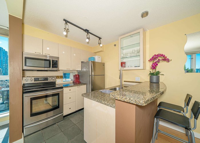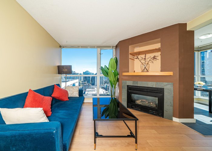 The Canadian at Wall Centre. Beautiful 2 Bedroom/2 Bathroom updated corner suite in the heart of Vancouver! Boasting vibrant city views and in a location steps to everything Vancouver has to offer. Yaletown, the sea wall, Beach District and The West End are all at your doorstep. a great building are some of the highlights in this perfectly run strata. Updated appliances, gas fireplace, in-suite laundry, floor to ceiling windows and tons of natural light in this great layout maximizing every inch of space. Pets allowed and rentals allowed with minimum 1 month rental terms. Call for your private showings.