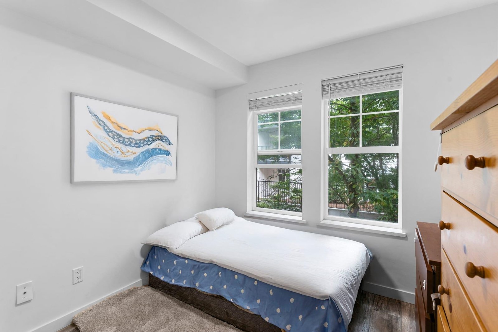 GREAT VALUE for spacious 976 sq ft 2nd fl unit, located on the QUIET side of the building, serving as 3 Bed + 2 Full Bath, with open concept kitchen and additional nook for an office, where every sq. foot is intelligently laid out. Includes 1 SECURED Parking and 1 STORAGE LOCKER. The BENTLEY building incl. practical amenities such as a GUEST SUITE and GYM. Strata fees INCLUDE UTILITIES Gas and Hot Water, generous Contingency Fund, proactively well maintained building; Rental friendly (3+ month) and Pet friendly (1 dog and/or cat), making it an ideal choice for families, professionals, and investors. CENTRALLY LOCATED, steps to Langley City Downtown Core, transit and schools + 3 min drive to Kwantlen College and Willowbrook Mall.