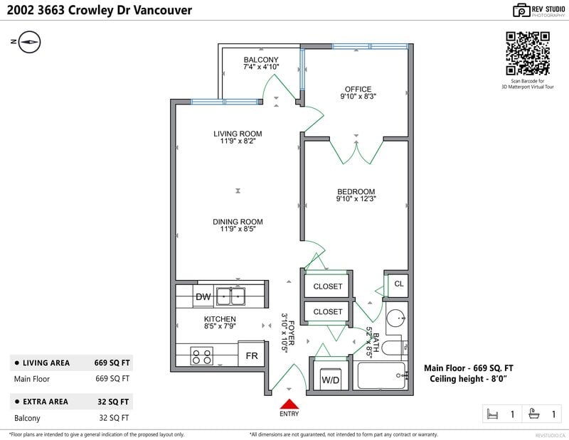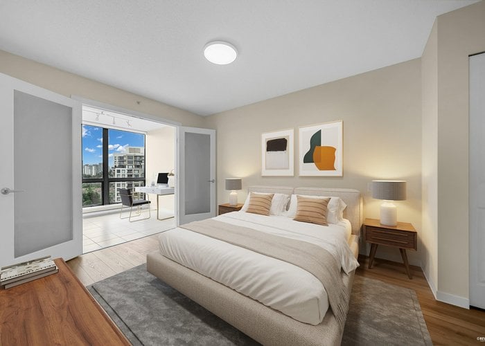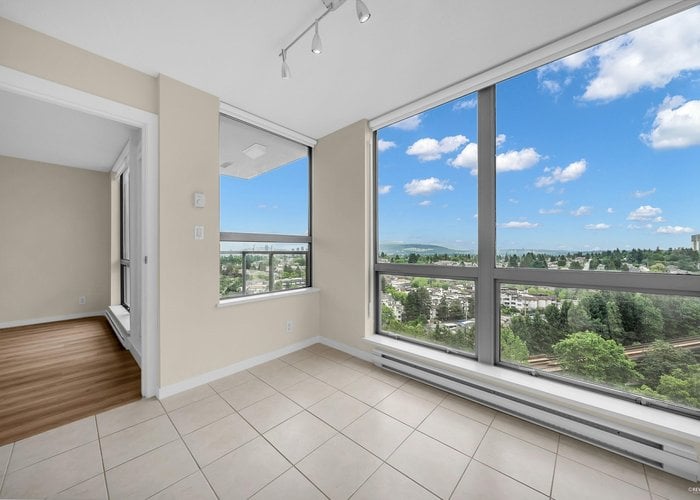 Welcome to Latitude by BOSA in the heart of Collingwood! This bright and modern 1 Bed + bedroom-sized Den, 1 Bath home offers 669 sqft of functional living on the 20th floor. East-facing with floor-to-ceiling windows, enjoy beautiful city and mountain views. The spacious den is perfect for a home office or guest space. Features include brand-new laminate flooring, new kitchen appliances, in-suite laundry, private balcony, 1 regular-size parking stall, 1 storage locker and LOW strata fee. A/C possible with strata''s approval. Unbeatable location—steps to SkyTrain Station, minutes to Metrotown, parks, schools, and shops. Easy access to Highway 1 makes commuting a breeze. *Some photos are virtually staged to showcase its potential*