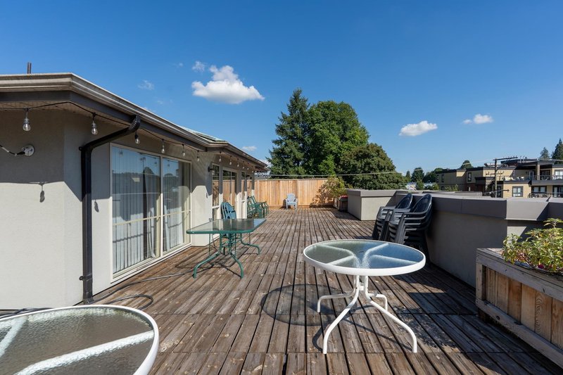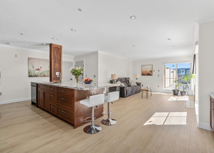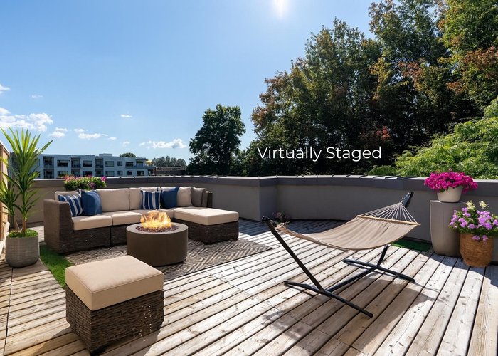 Enjoy Amazing Indoor/Outdoor living in this STUNNING PENTHOUSE 2-bedroom, 2-bath featuring an ENORMOUS 1,518 sqft rooftop patio! Extensively renovated, the open plan was reimagined, walls removed and anchored by a massive island with bar seating & storage. Chef’s kitchen boasts granite counters, SS appliances, lots of cabinetry. Recent upgrades: new bathrooms, flooring, paint. A spacious living room with gas fireplace flows to the sun-filled patio—ideal for entertaining or private retreat. Bedrooms are separated for privacy. Nestled in a boutique building on a quiet cul-de-sac beside Central Park, this residence combines tranquility with convenience near shops, cafés, schools, transit, and trails. Truly one-of-a-kind opportunity! Open House Sun. Nov. 30 2-4 pm.