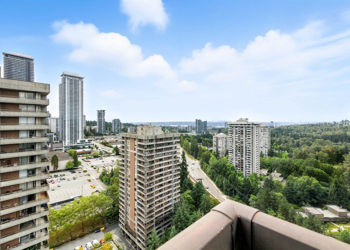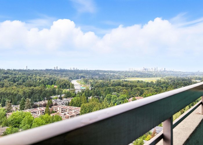 Spacious and move-in ready sub-penthouse with laminate flooring, panoramic green views, and bright east and south exposures. The versatile floorplan fits house-sized furniture or allows for a den/3rd bedroom. Excellent storage with multiple hall closets, large bedroom closets, plus a locker. Enjoy a 336 sq ft deck for entertaining or gardening. Comes with 1 parking stall. Amenities include pool, hot tub, sauna, gym, workshop, lounge, and games room. Set amid acres of private gardens, steps to City of Lougheed, SkyTrain, shopping, parks, and schools. NOTE: Strata Fee includes Electricity! Open House Nov 16th 2-4PM