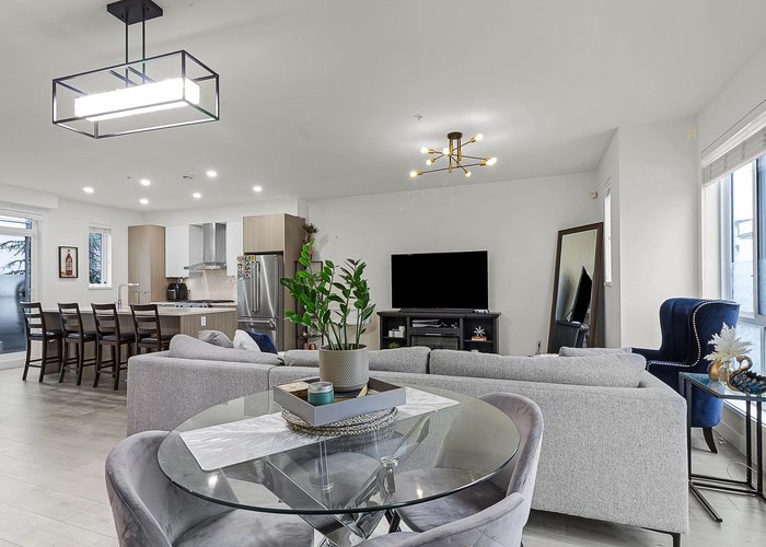 Welcome to LUXIA at Yorkson, Offers a low-maintenance fee includes Gym, Clubhouse & Play Ground! This bright and spacious 3-bedroom townhome offers modern living with thoughtful design throughout. The open-concept main floor features a gourmet kitchen with stainless steel appliances and a large island with quartz countertops. Upstairs, the luxurious primary bedroom boasts a spa-like ensuite with double vanity sinks and a generous walk-in closet. Two additional bedrooms and a side-by-side washer & dryer provide ultimate convenience. Enjoy the double side-by-side garage, extra storage, and backyard perfect for summer BBQ''s. Located steps from Richard Bulpitt Elementary, Willoughby Town Centre, Parks, and with easy access to Highway