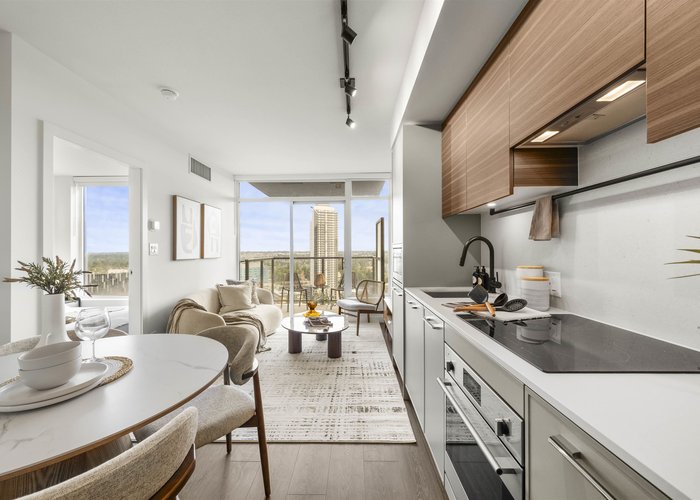Experience the epitome of urban living at King George Hub''s PLAZA TWO by PCI Developments. This SOUTH facing residence features floor to ceiling windows w/ an abundance of natural light, Chef ready integrated kitchen, Spa-like Bathroom, Spacious Patio for entertaining, In suite COOLING & is the BEST FLOORPLAN in the building! Amenity Rich: On Site Caretaker, Rooftop Lounges w/ BBQ''s, Children''s Playground, Co-work & Library Space, Theatre Room & Fitness Hub. Plaza Two is home to a lifestyle that engages you with its charm & convenience. With steps to SkyTrain, Save-On-Foods, Rexall, Browns Socialhouse, Central City Shopping Centre, T&T, SFU & Kwantlen Universities, an effortless lifestyle awaits. This gem makes the perfect starter home to live in or invest!