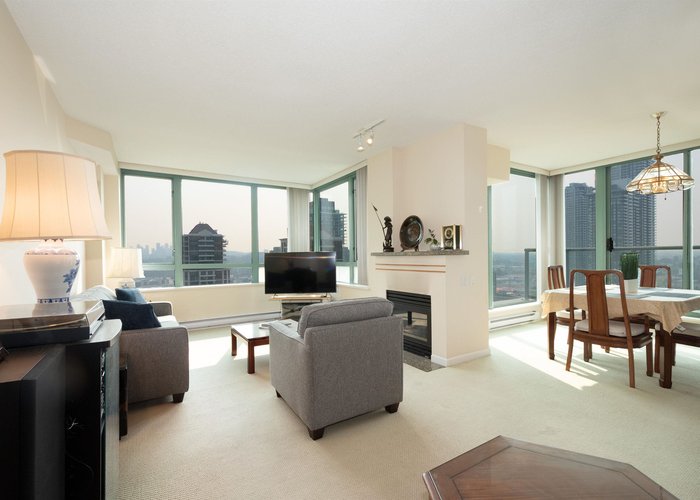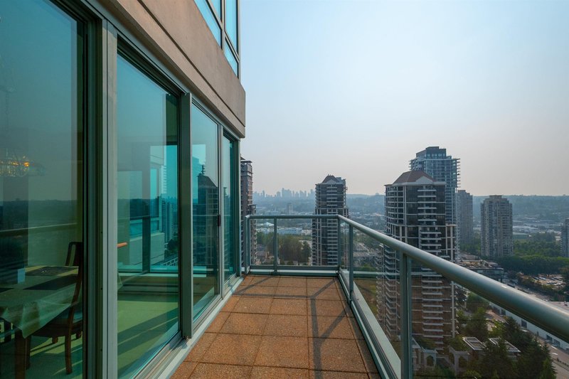 Rare find! Extra large 3br + 2.5bath, corner unit at Buchanan East. Conveniently located in the heart of Brentwood. Bright corner suite boasts 9ft high-ceiling throughout, large living room with gas fireplace, formal dining area and 2 spacious balconies with view of Northshore mountain. Kitchen comes with generous eating area, maple shaker cabinet, granite counter tops, S/S appliances. King-sized master bedroom can accommodate house-size furniture, and 2 good size bedrooms for family or guests. 2.5 bath + laundry room. 2 parking + 1 storage. 1 pet allowed (up to 50lb). Amenity include hot-tub & sauna, exercise room, and lounge. Plenty of visitor parking. Direct access to shopping, short walk to Brentwood mall, Skytrain, and easy access to HWY 1. OPEN HOUSE SEP 13th & 14th, 2-4pm.