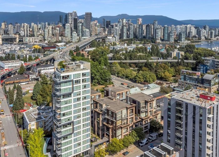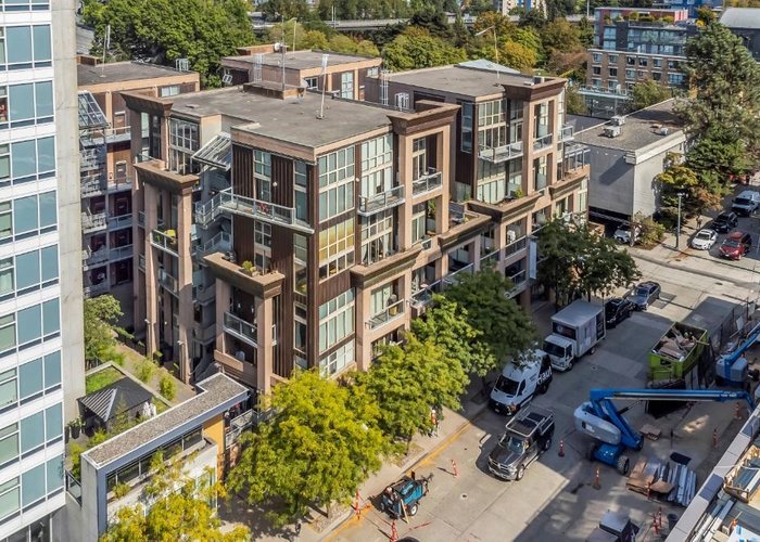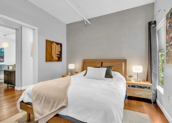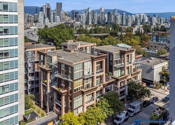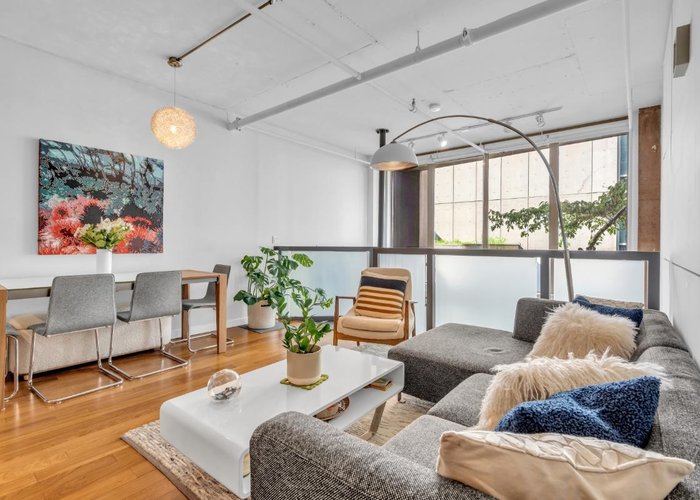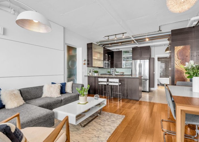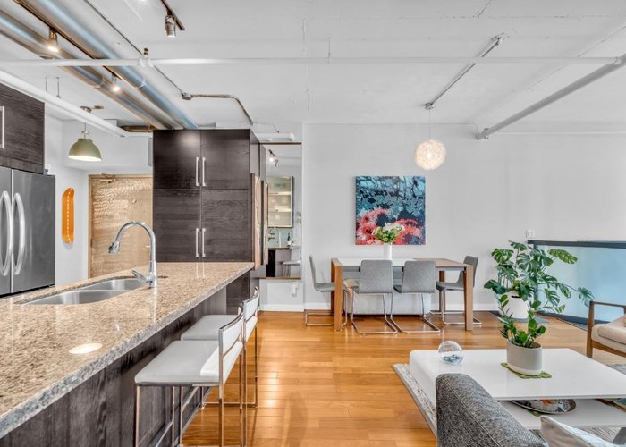 Rare offering in South Granville! This 1829 sq.ft. live/work loft combines two strata lots into a 2-bed+den, 3-bath home with endless flexibility—perfect for an artist’s studio, creative business, or family residence. Quiet concrete construction with radiant heating & cooling included. Kitchen & bath upgrades (2009). Features 2 side-by-side prking stalls (6&7), 2 storage lockers (56&57), and 2 private patios. Pet-friendly building with walkway upgrades (2025) paid. Steps to Granville Island. Nothing else like this on Vancouver’s Westside—unique space & lifestyle opportunity for the smart buyer! More photos online. Offers presented as received.