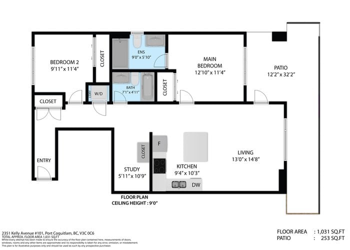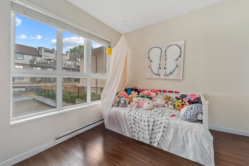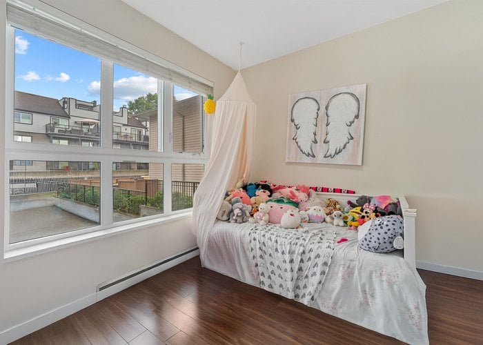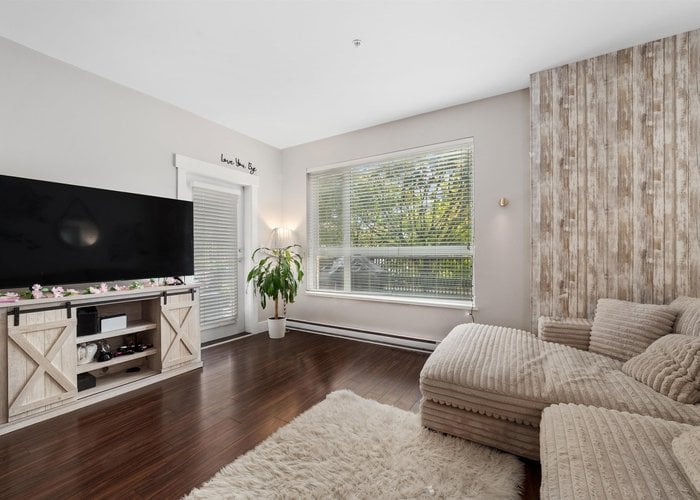 Welcome to La Via! This spacious 2 bed, 2 bath ground floor condo offers over 1,000 sqft of well-designed living with 9ft ceilings and modern finishes. The bright, south-facing layout features a stylish kitchen with quartz countertops and a large island, perfect for entertaining. Enjoy the convenience of your own private patio with separate entrance - ideal for easy access and extra outdoor living space. Complete with 2 parking stalls and 1 storage locker, this home checks all the boxes. Located in the heart of Port Coquitlam, you’re just steps to the rec center, shopping, parks, and transit, including the West Coast Express for quick commutes. A perfect blend of comfort, style, and convenience!