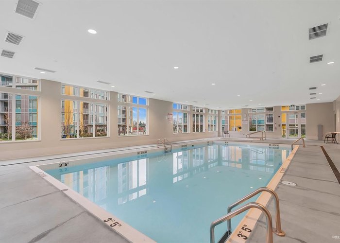 Tempo developed by Amacon. Great location within 10 minutes walking distance to Canada Line, Richmond Shopping Centre and Lansdowne Centre. Just several steps to Olympic Oval, T&T, library, restaurants and Fraser River. Tempo Club offers deluxe amenities such as indoor swimming pool & hot tub, exercise center, dance/yoga studio & party kitchen. Concrete construction with contemporary finishing. This spacious two bedroom & 2 bathroom unit with A/C is 901 sq ft living with an outdoor balcony. Must to see!