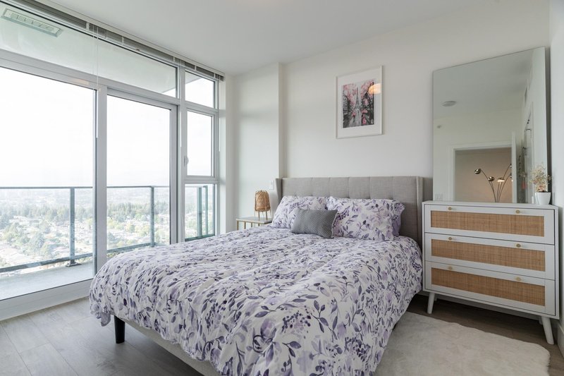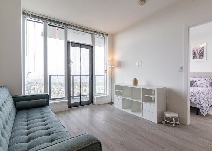 Enjoy breathtaking 180° panoramic views of the city and mountains from this NW-facing 1 bedroom, 1 bathroom home perched on the 33rd floor of Kings Crossing II by awarding-winning Cressey. Floor-to-ceiling windows and 9’ ceilings fill the space with natural light, while the renowned Cressey Kitchen offers a gas cooktop, wall oven, integrated appliances, and ample storage. This home comes equipped with central A/C and heating and showcases quality laminate flooring throughout. Amenities include a concierge, fitness center, steam & sauna rooms, basketball court, and many more. Just steps to Highgate Village, Edmonds SkyTrain, library, shops, pool, community Rec Center, banks and many more. Includes 1 parking and 1 locker. A fantastic opportunity for first-time buyers and savvy investors.