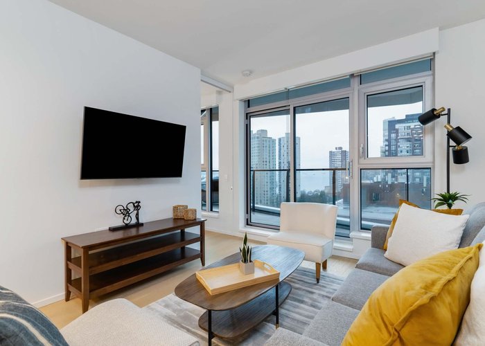 Welcome to The Pacific – 1BR+Den in the heart of Downtown Vancouver. Enjoy a designer Snaidero kitchen with Sub-Zero, Wolf & Miele appliances, and a marble bathroom with heated floors. Engineered hardwood and natural stone add refined touches, while your private balcony offers stunning city, mountain, and False Creek views. Steps to Yaletown, English Bay, and the seawall. Furnished and move-in ready! Open house: Dec 6(sat), 2pm-4pm.