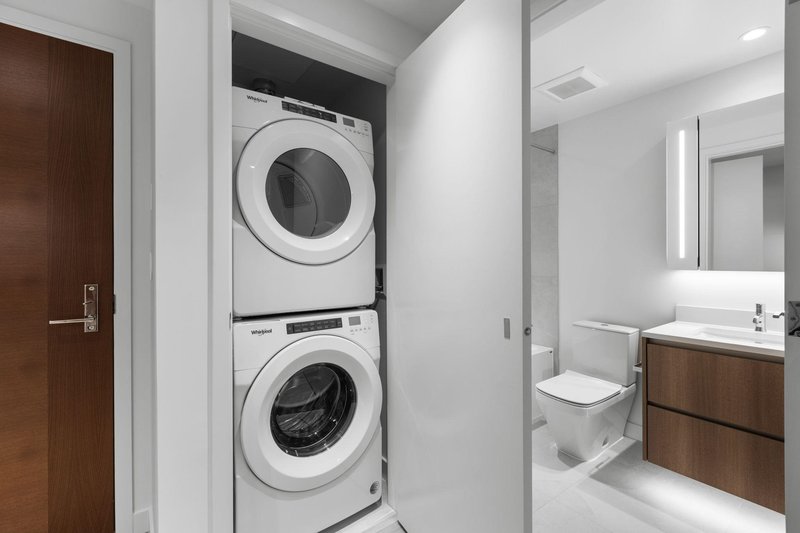 Discover the Boffo difference—generations of Italian craftsmanship distilled into Smith & Farrow, Coquitlam’s new benchmark for luxury living! This meticulously designed 2 bed + 2 bath residence features 9’ ceilings, A/C, and floor-to-ceiling windows that flood the home with natural light. The chef-inspired kitchen showcases custom cabinetry, full-size premium integrated Fisher & Paykel appliances, quartz countertops, a waterfall island, and brilliant storage solutions. Enjoy an expansive covered balcony for year-round entertaining. Resort-style amenities include a 65-ft outdoor pool, hot tub, sauna/steam room, fitness centre, 3600sqft rooftop lounge, and concierge service—all just steps from Burquitlam SkyTrain, parks, shops, and dining. Experience unmatched legacy-level living by Boffo.