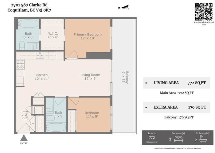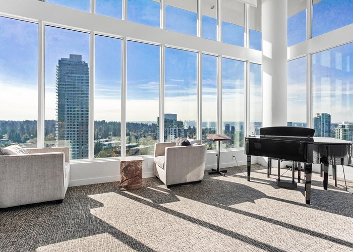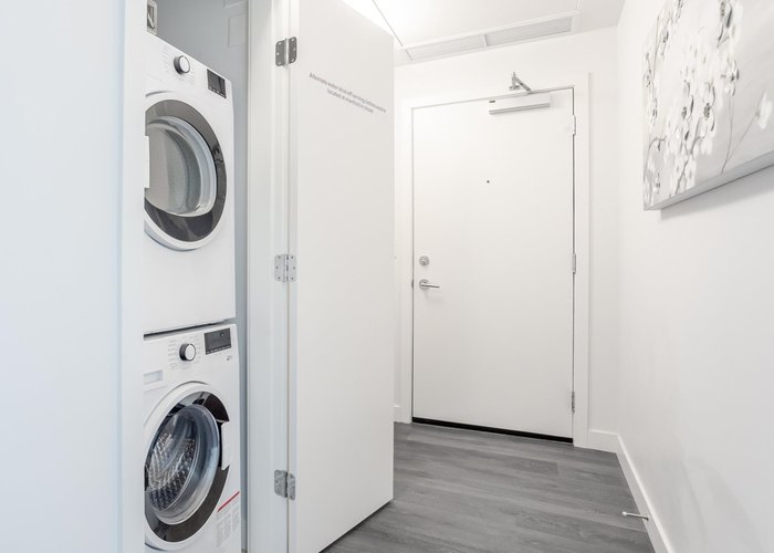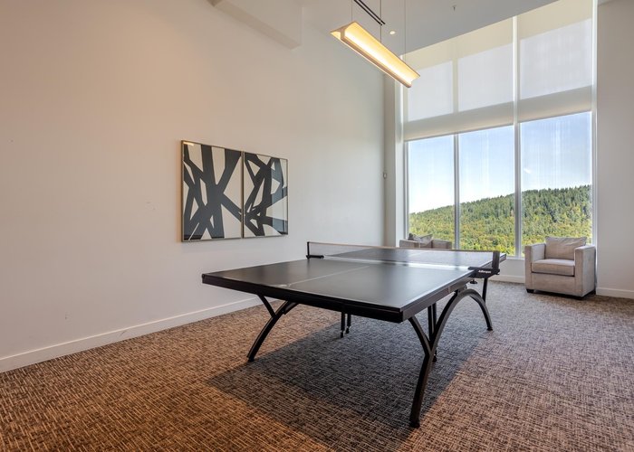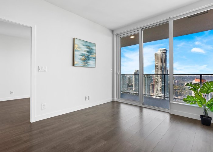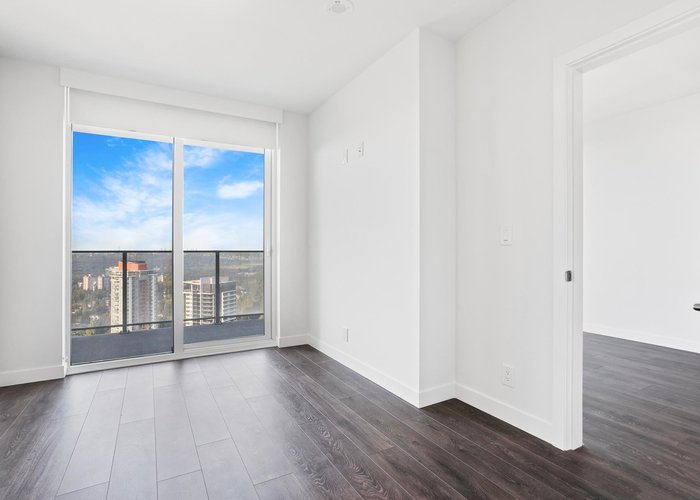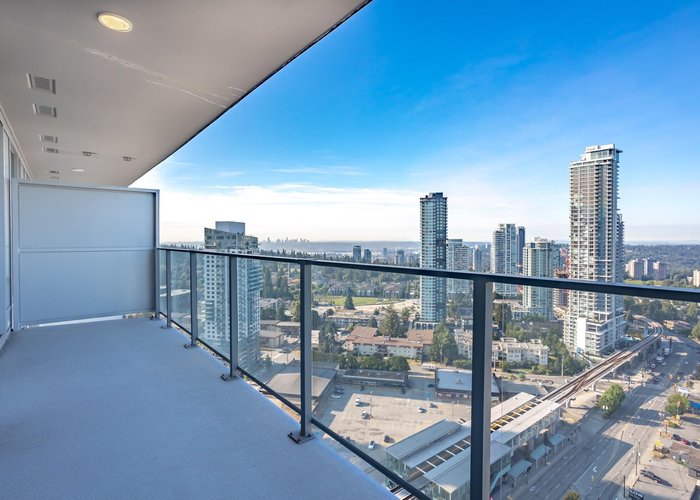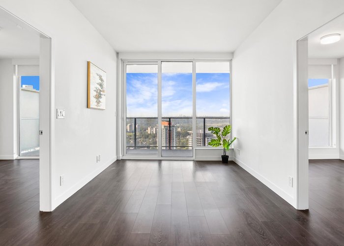 Stunning South-Facing 2 Bed, 2 Bath with Side-by-Side Parking! Experience the best floor plan in the building! This immaculate, like-new 2-bedroom, 2-bathroom unit features air conditioning and a highly desirable layout. Enjoy the convenience of an ensuite bathroom for the primary bedroom, plus a second bathroom conveniently located outside the other bedroom. Soaring 9-foot ceilings and expansive floor-to-ceiling windows showcase gorgeous city and mountain views, flooding the space with abundant natural sunlight. Premium Finishes Include: Stainless steel appliances, Quartz countertops , Custom cabinetry, Hardwood flooring. Situated in a supremely convenient location, steps away from shops, restaurants, and directly across the street from Burquitlam Station.OPen House Sat(Nov. 29) 12-1pm