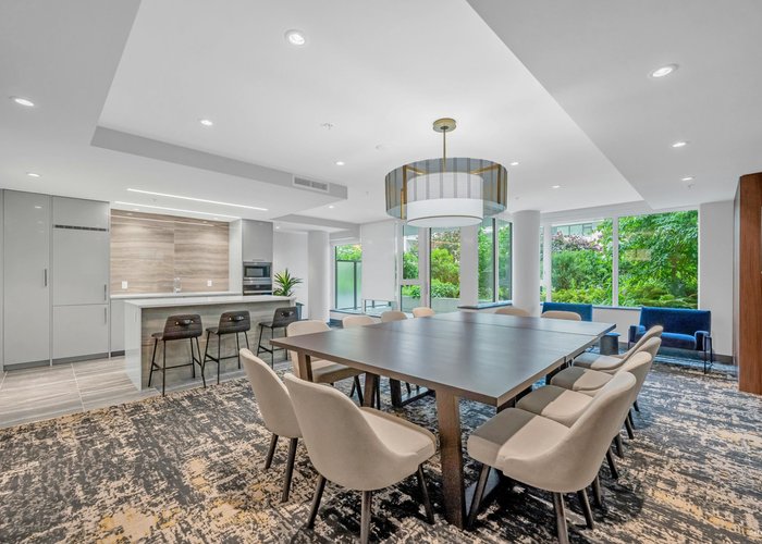 VIEWSTAR! An Urban Oasis where luxury meets convenience & tranquility! This NW facing, naturally bright unit spans 984sqft of interior space, 78sqft balcony, comprises of 2 bedrooms (separated for privacy), 2 bathrooms and a den/flex. This home is a combination of functionality & elegance, featuring a gourmet kitchen with upscale high-end appliances! Enjoy over 130,000 sqft of exclusive amenities: Indoor Pool, Hot Tub, Sauna, Steam Room, Study Lounge, multiple Private Dining Rooms, multiple Outdoor BBQ Areas, Children’s Playroom, Game Room, Tai-Chi Area, Meeting Room, Music Room, 2 Level Fitness Centre and so much more! An opportunity not to be missed!