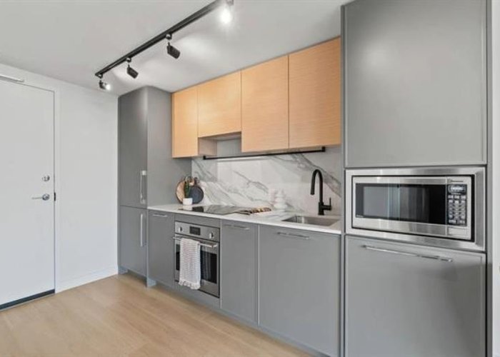 Brand new 2025-built condo on the 32nd floor with stunning east-facing views of the city and mountains! Featuring rare 12ft ceilings, premium Fulgor appliances, quartz counters, wide plank flooring, in-suite laundry, EV parking, and storage. Enjoy top-tier amenities: rooftop patio with outdoor theatre, gym, coworking lounge, and more. Steps to SkyTrain, shops, and dining—urban living at its finest!
