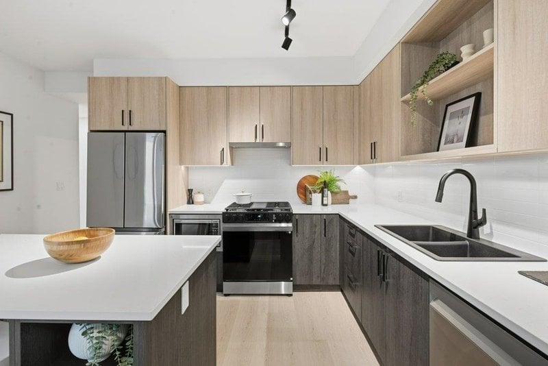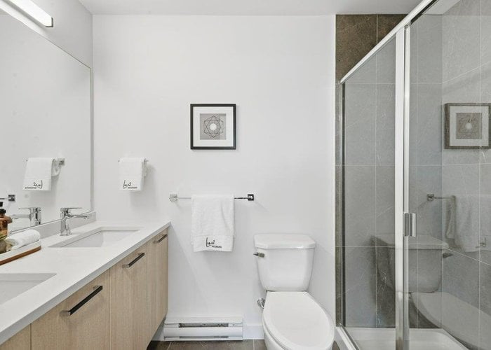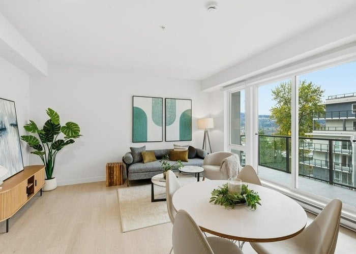 Welcome to this bright and modern 2-bedroom + den, 2-bath home at Anchor Bold – a limited collection of luxury residences in vibrant Port Moody. This west-facing unit offers contemporary West Coast style with clean lines, oversized windows, and a spacious 109 sq ft balcony perfect for sunset views. Enjoy a sleek open-concept kitchen with stainless steel appliances, quartz countertops, and ample storage. The primary bedroom features a walk-in closet and spa-inspired ensuite, while the versatile den is ideal for a home office or nursery. Building amenities include a large lounge, fitness centre, and a stunning rooftop terrace. Steps from St. Johns shops, Brewers Row, Rocky Point Park, trails, transit, and SkyTrain.